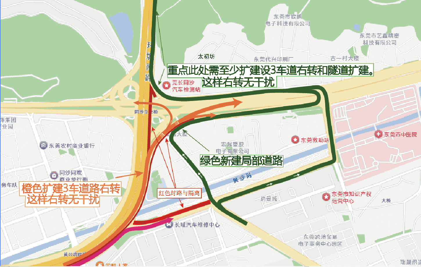 环城南路转松山湖大道不能简单的一封了之。个人给出个建议如图。