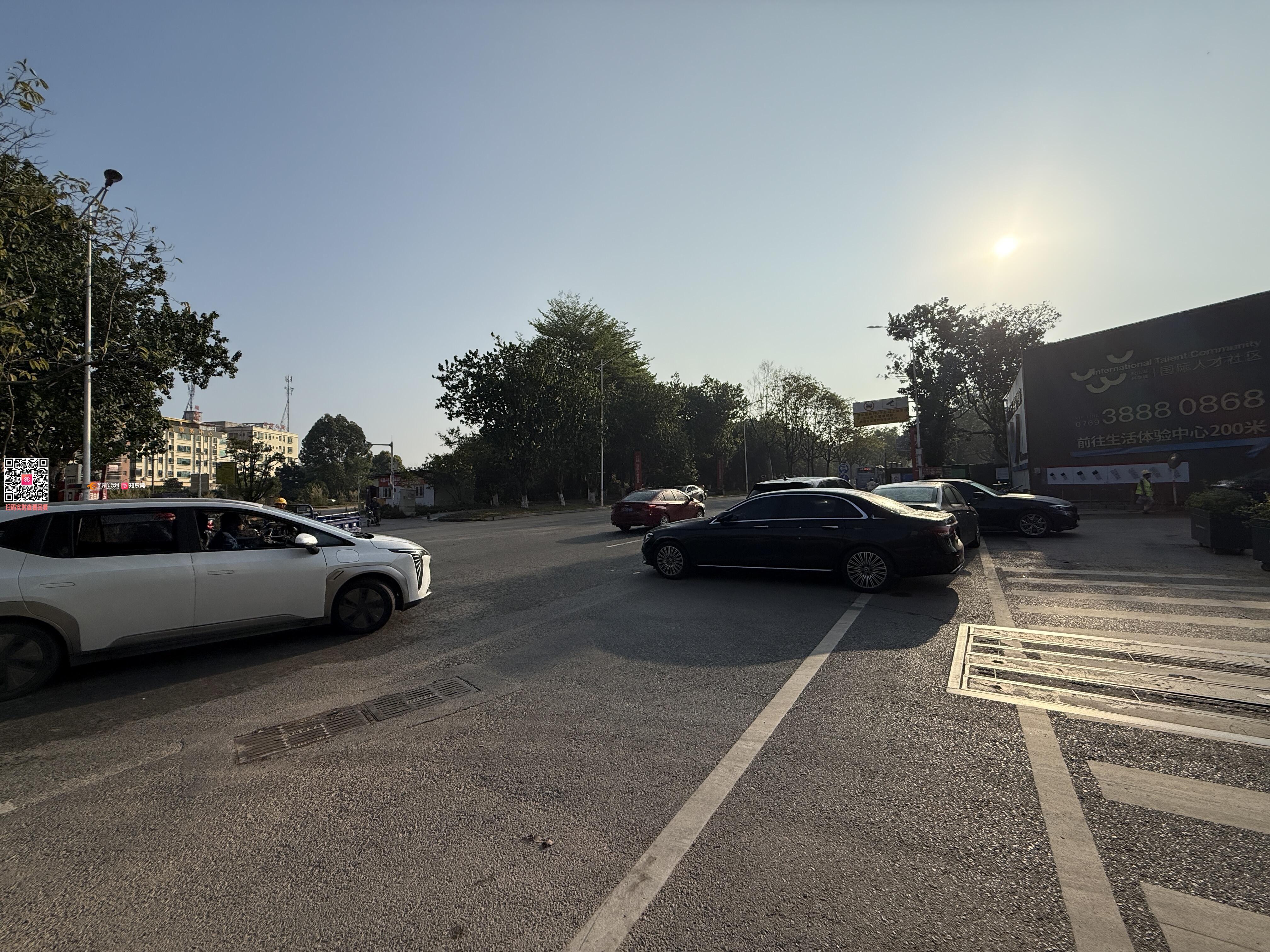 东莞市松山湖园区玉兰路,松湖润府小区与松山湖人才房公寓路口,该路口长期有大量机动车违规停放。