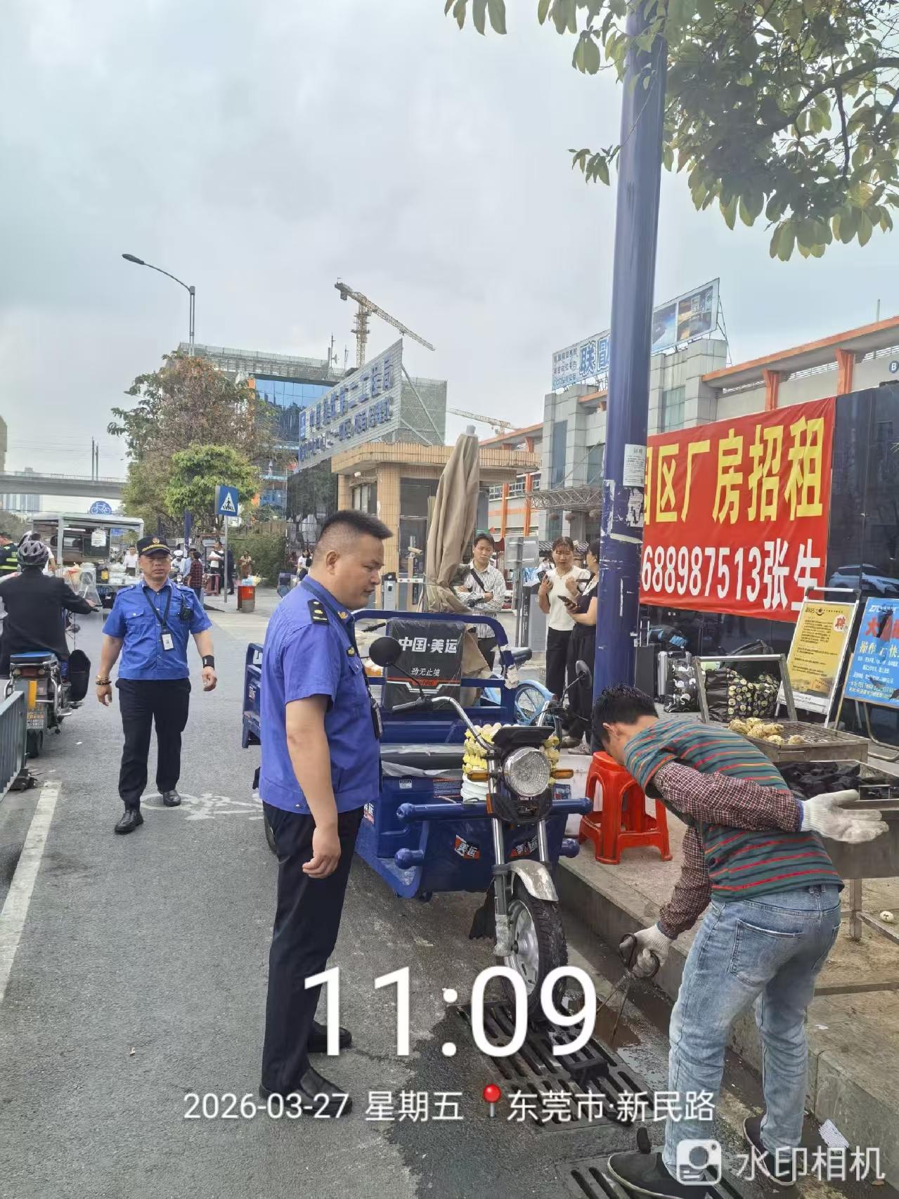 尊敬的市民,您好!您所反映的问题已收悉,现将情况回复如下:接到投诉后,我片区执法人员联合属地社区工作人员于2026年3月27日到达投诉现场。经现场勘察,执法人员对流动商贩进行宣传教育,向其占道经营的扰民的危害性,并责令其整改,以免影响周边居民的正常生活;执法人员已对现场的垃圾进行清理,并通知市场化公司加强对该路段的保洁。接下来,我片区将联合属地社区对此投诉情况进行跟踪监督,加大该路段的巡查频次。如有疑问,请联系东莞市城市管理和综合执法局长安分局,联系电话:0769-81622227。感谢您对我们工作的理解和支持!