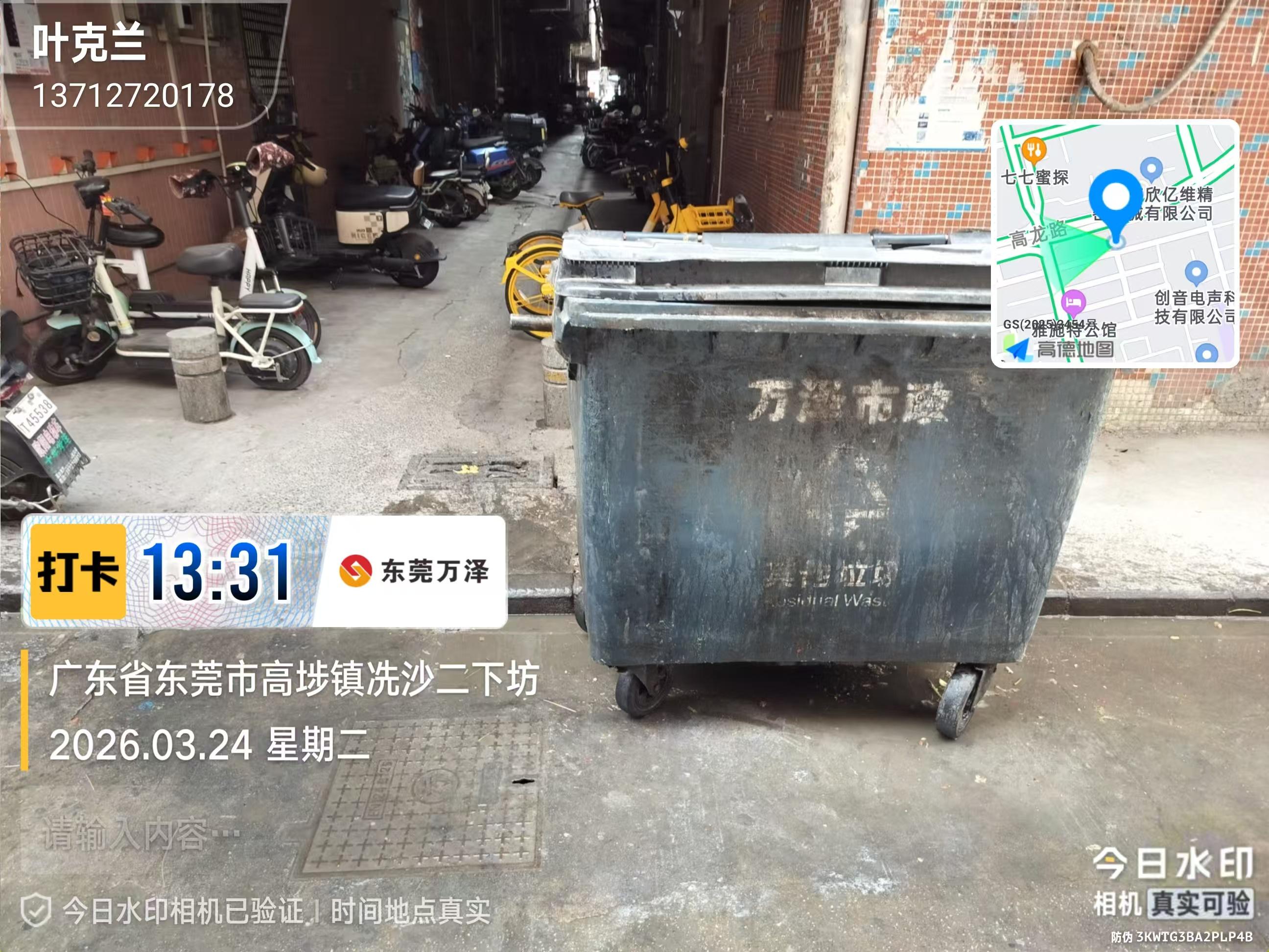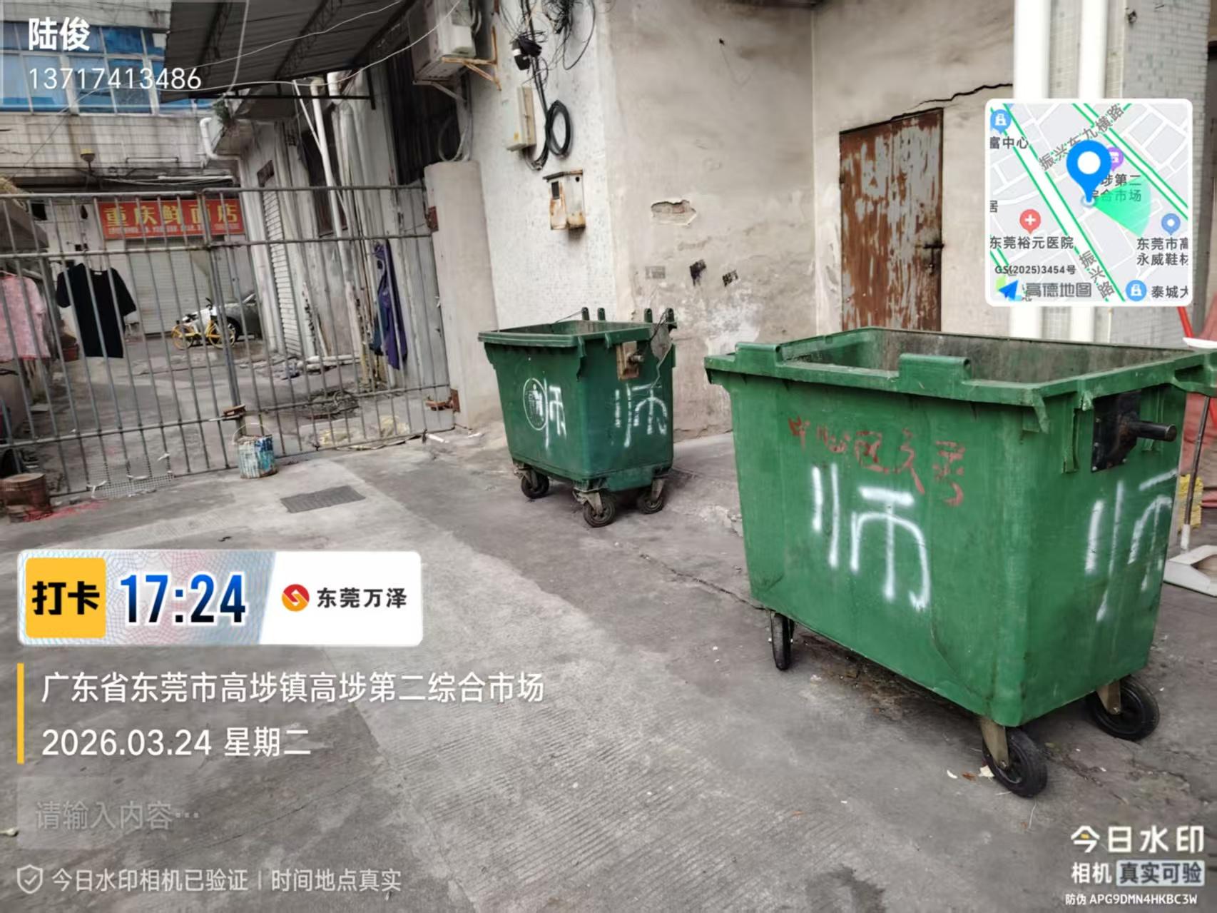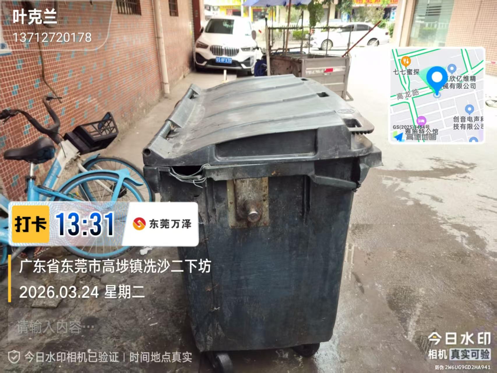 东莞市农村垃圾桶的放置的位置需离居民楼有一定的距离,在不影响居民日常生活的前提下,方便居民投放垃圾,并且垃圾桶处需保持环境卫生整洁,避免异味和蚊蝇滋生。 高埗镇冼沙星光东四街491号后门的垃圾桶就放置在离居民楼不到两米,经常处于满溢状态,晚上垃圾堆积成山,垃圾散落、厨余乱倒,不仅散发出难闻的异味(夏天恶臭更加让人难以承受),还吸引了大量蚊虫(天气回暖,这里为蚊虫提供了繁殖场所),凌晨时段人流少时很多老鼠从垃圾桶下面的下水道跑出乱窜,经过此处时常被老鼠吓到,住在这里二楼开窗通风时不仅闻到恶臭难以入睡,还有苍蝇蚊虫飞进屋。巷道本就窄,垃圾桶放在此处还影响居民的出入,阻碍了消防通道。这种现象不仅影响了周边环境的卫生整洁,对居民的健康构成了潜在威胁和严重影响日常生活。3月18日已反应过此问题,相关部门说不能撤离这个垃圾桶,已要求管养公司立即对该处门口垃圾桶以及地面进行冲洗。但此现象依然存在,我想问问不撤走垃圾桶,是否能保证垃圾不溢满,每天都冲洗垃圾桶和地面且没有恶臭和苍蝇蚊虫,晚上的垃圾堆积成山能即时处理吗? 希望相关部门能更好的处理此问题,还居民一个良好的居住生活环境。建议将垃圾桶移至十多米外的路边,垃圾桶移走后可贴一张告知通知,居民便不会将垃圾堆放在这里。据我走访高龙中路,可参考图6(高龙中路30号)的垃圾桶摆放位置,这样不仅不影响居民的日常生活,还方便居民投放垃圾。