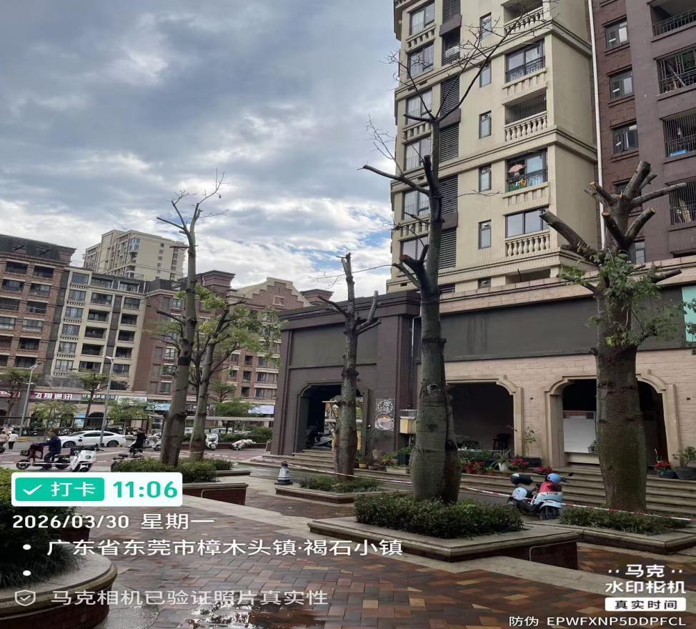樟木头保利林语花园2期这两天把街边的大树砍伐的面目全非,完全不顾业主的要求建议,简直就是小区的霸主。在群里美其名曰说是为了业主的安全,那也应该是修枝整理,哪里是像他们那样,砍的只剩树干了,十年树木,这要长多少年啊。本来是应该每年修剪一次,现在他们这样 花一次的钱管十年,这算盘珠子都蹦人脸上了。请求有关部门管管,不知道去哪里说理去,无法无天的了!!!