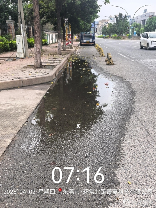 环常北路,由常横路往寒溪河方向,东莞市菁莨生物科技有限公司门口路段,有地面下沉,每次经过开快一点,都像撞到马路牙子一样