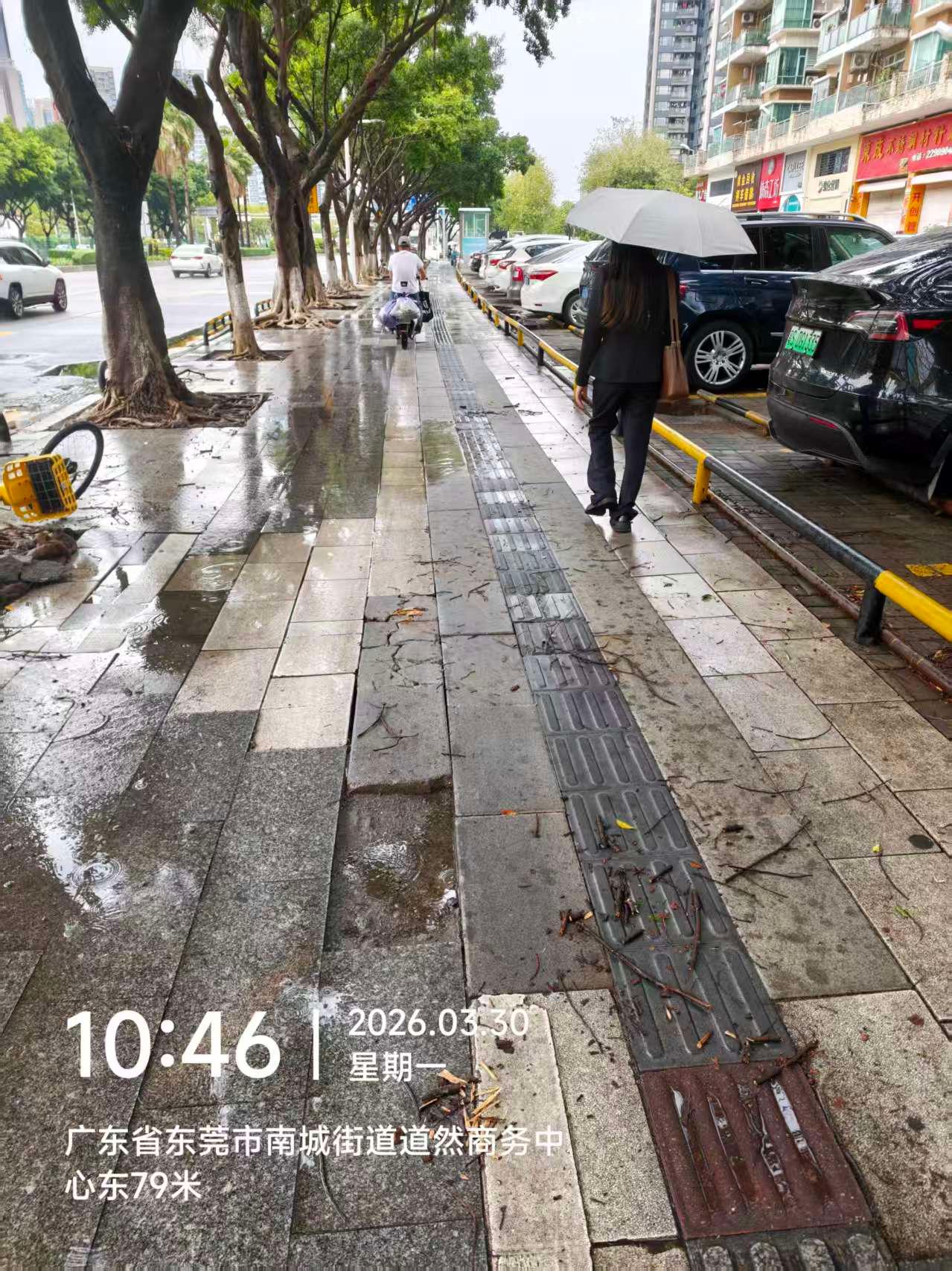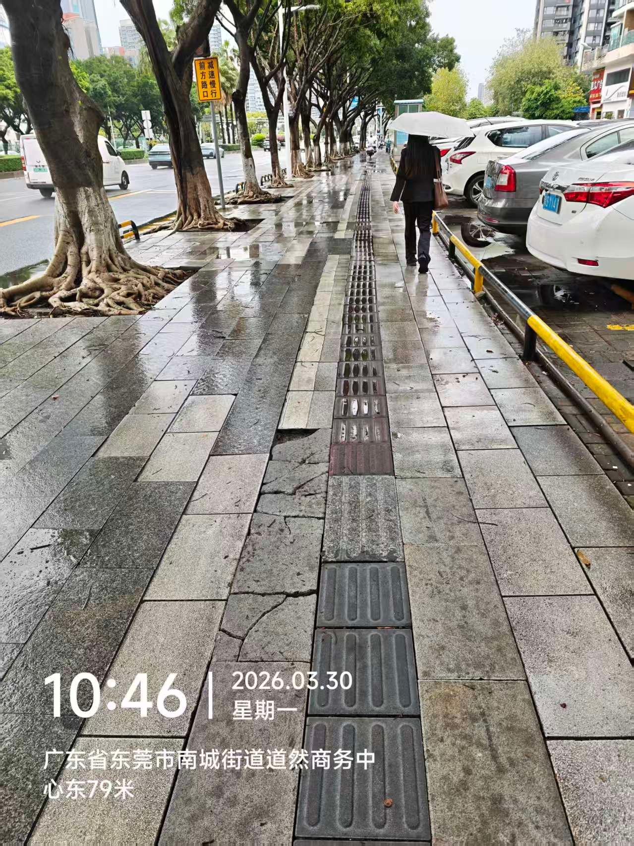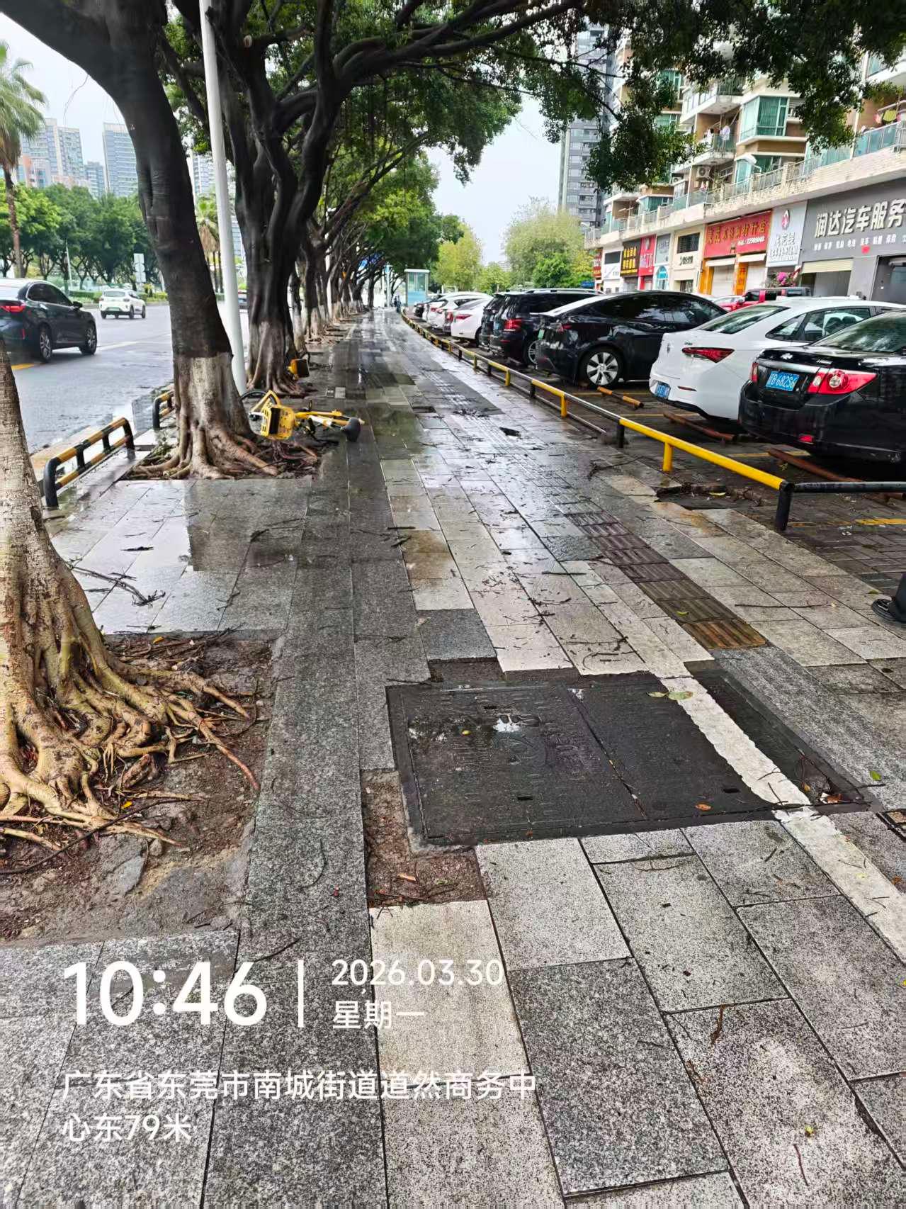 尊敬的市民,您好!您反映的问题已收悉,现回复如下:收到反映的情况后,我们于2026-03-30 10:30 电话与您联系,并于2026-03-30 10:46 对诉求进行现场核查。经查您所反映的宏远路宏远江南世家西2门,门口的人行道,瓷砖缺失、破裂情况属实,我分局已修复完毕,您所提问题已经解决。如有疑问,请联系南城城管分局,联系电话:0769-22900889。感谢您对我们工作的理解和支持!