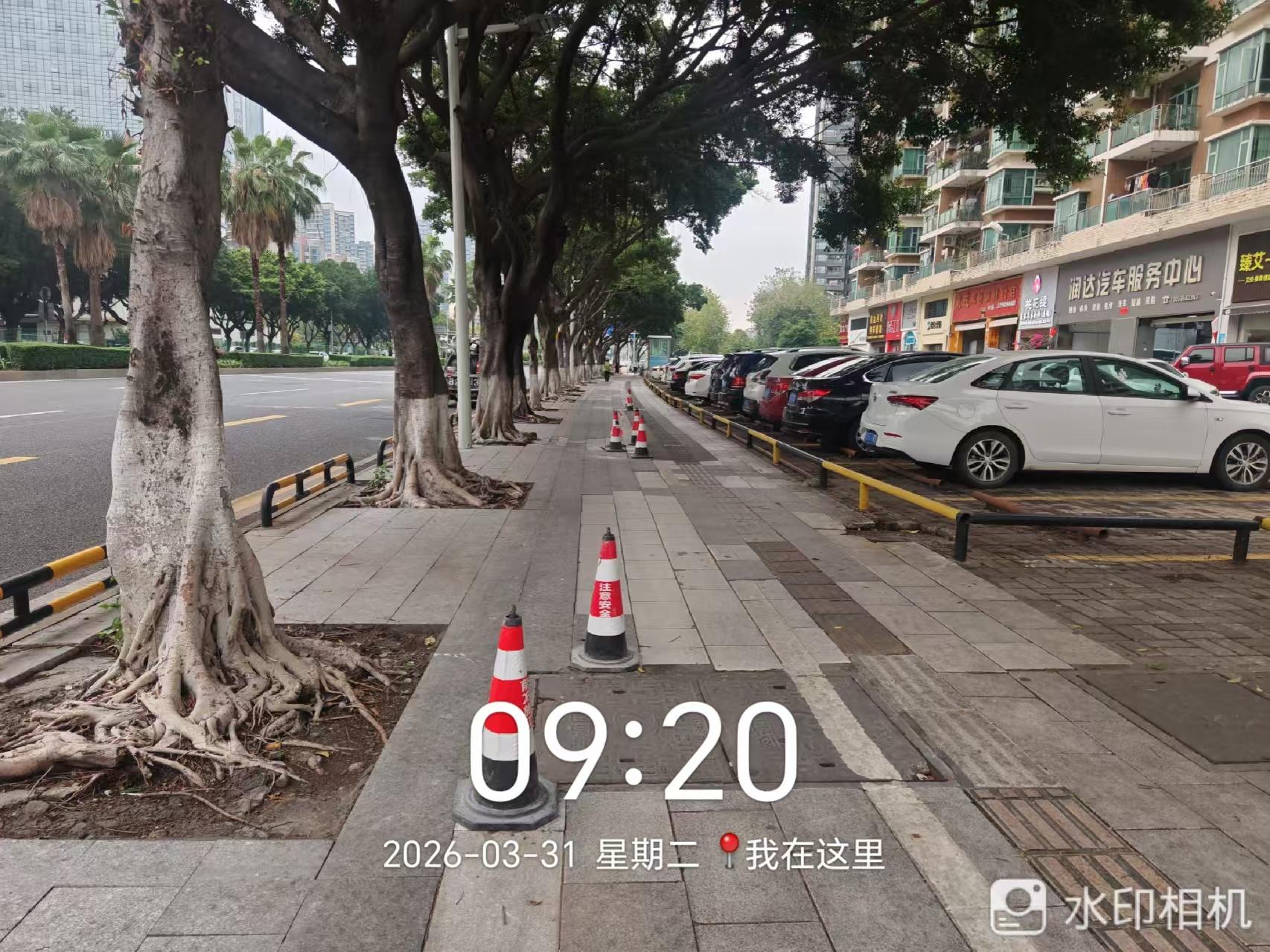 宏远江南世家西2门,门口的人行道,瓷砖缺失、破裂