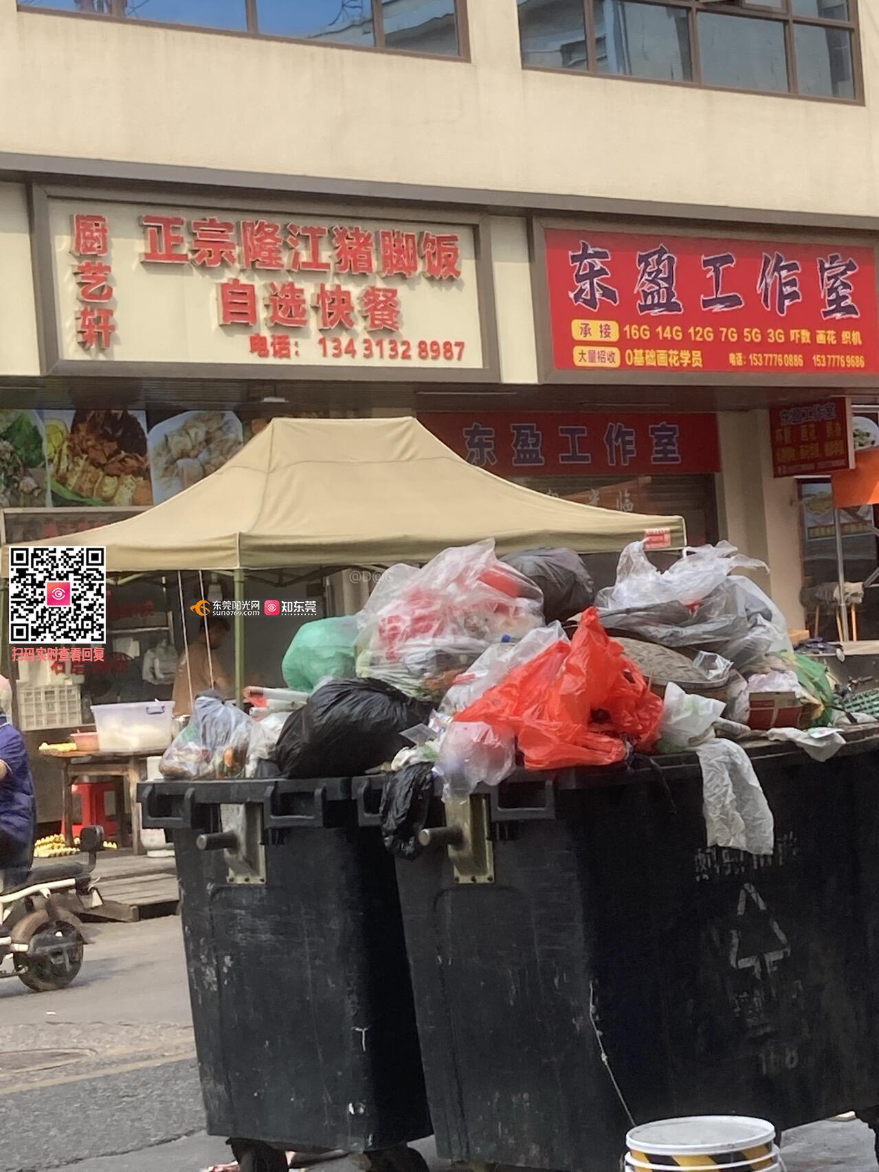 您好,我是大朗镇巷尾社区聚新三路62号商户,今天(3月29日)发现小区商铺门口的垃圾桶出现严重满溢,垃圾混放并堆积在马路中间,不仅影响市容环境,还存在蚊虫滋生、病媒传播的健康风险,也阻碍了行人与车辆安全通行。恳请尽快安排人员清运垃圾,并加强日常巡查与垃圾分类,安排合理放置引导,避免类似问题再次发生,共同维护整洁安全的居住环境。感谢您的处理与回复!