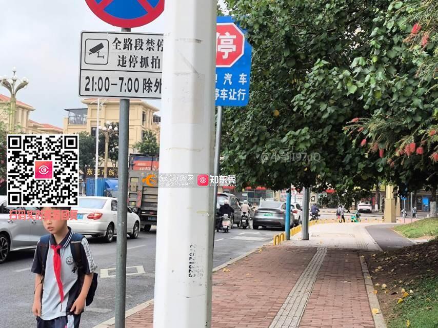 莞市横沥镇蓓蕾路段人行道树枝下垂过低,影响行人正常通行,存在安全隐患