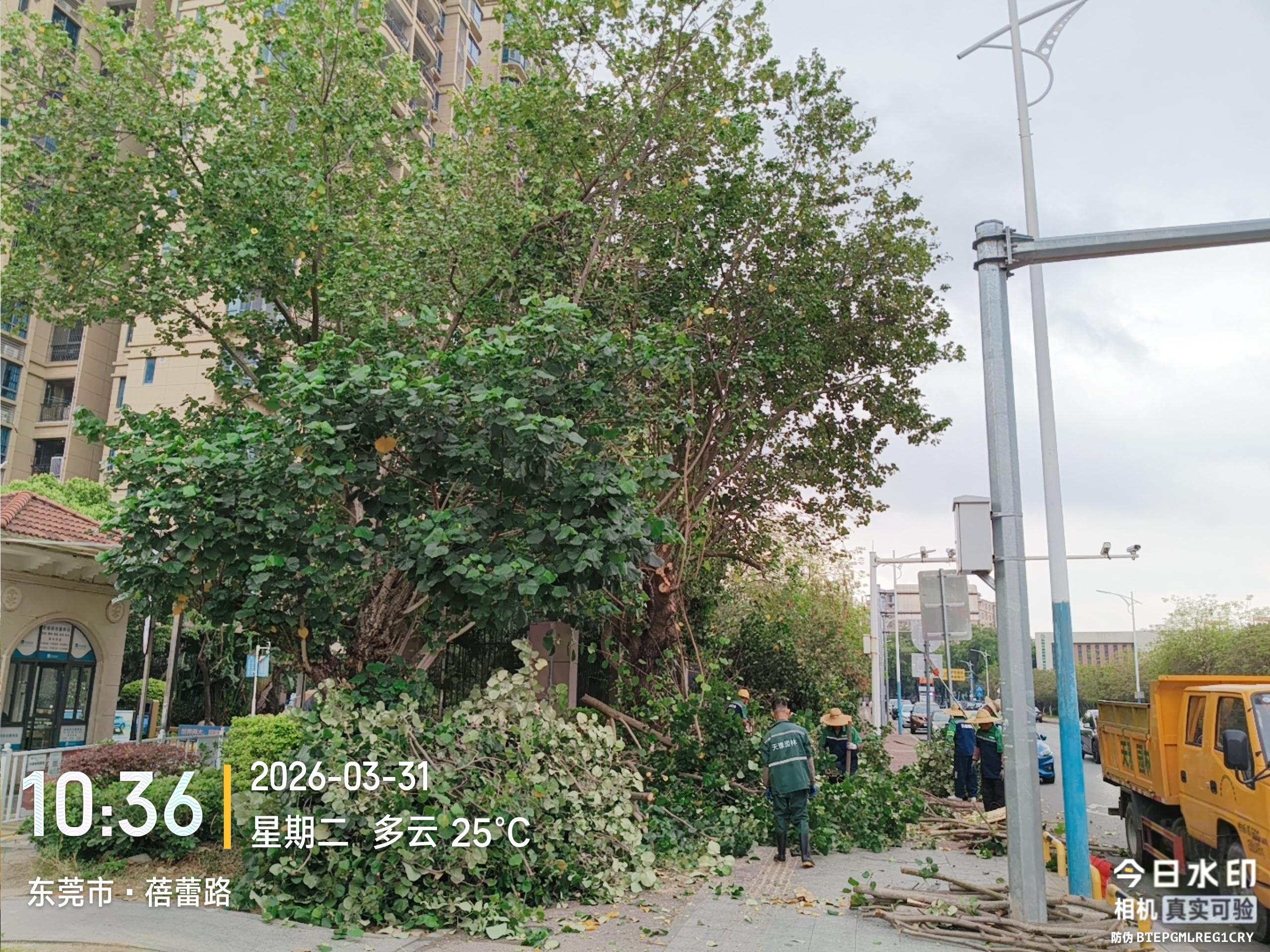 尊敬的市民,您好!您反映的问题已收悉,现回复如下:收到反映的情况后,我们于2026-03-31 09:25:42电话与您取得联系,并于2026-04-03 11:38:39对诉求进行办理。经查,公用中心已通知园林公司开展行道树修剪工作,现已完成修剪。如有疑问,请联系横沥镇公用事业服务中心,联系电话:82301212。感谢您对我们工作的理解和支持!