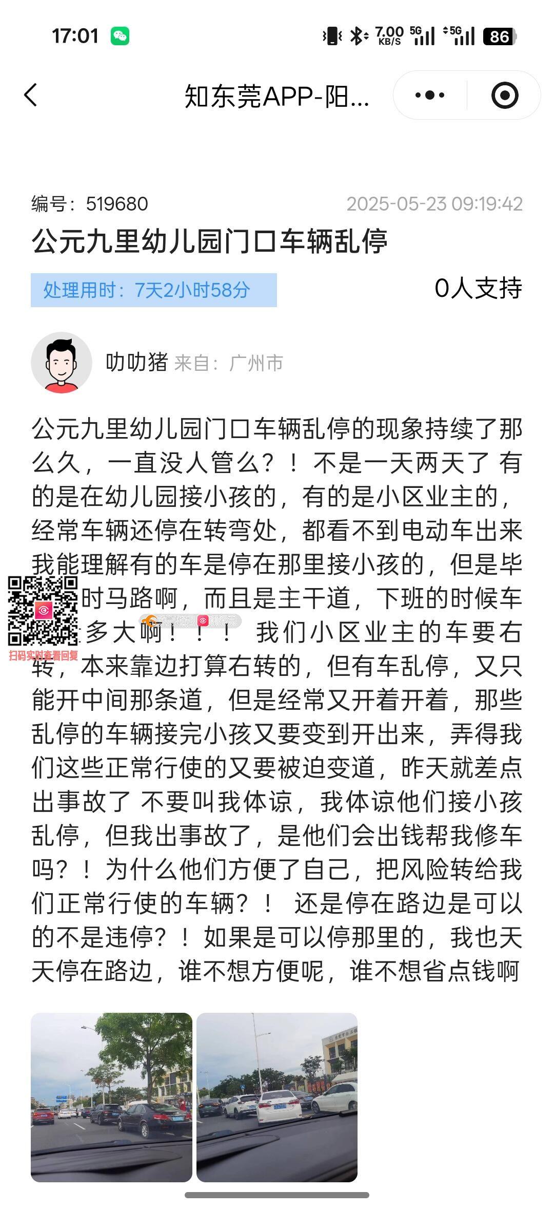 25年5月已经投诉过一次了,那时回电说会申请资金装摄像头拍摄乱停乱放车辆,现在快一年了,摄像头的费用还没下得来吗?! 现在的车不仅停在靠边的车道,现在都快把右转车道都堵住了
