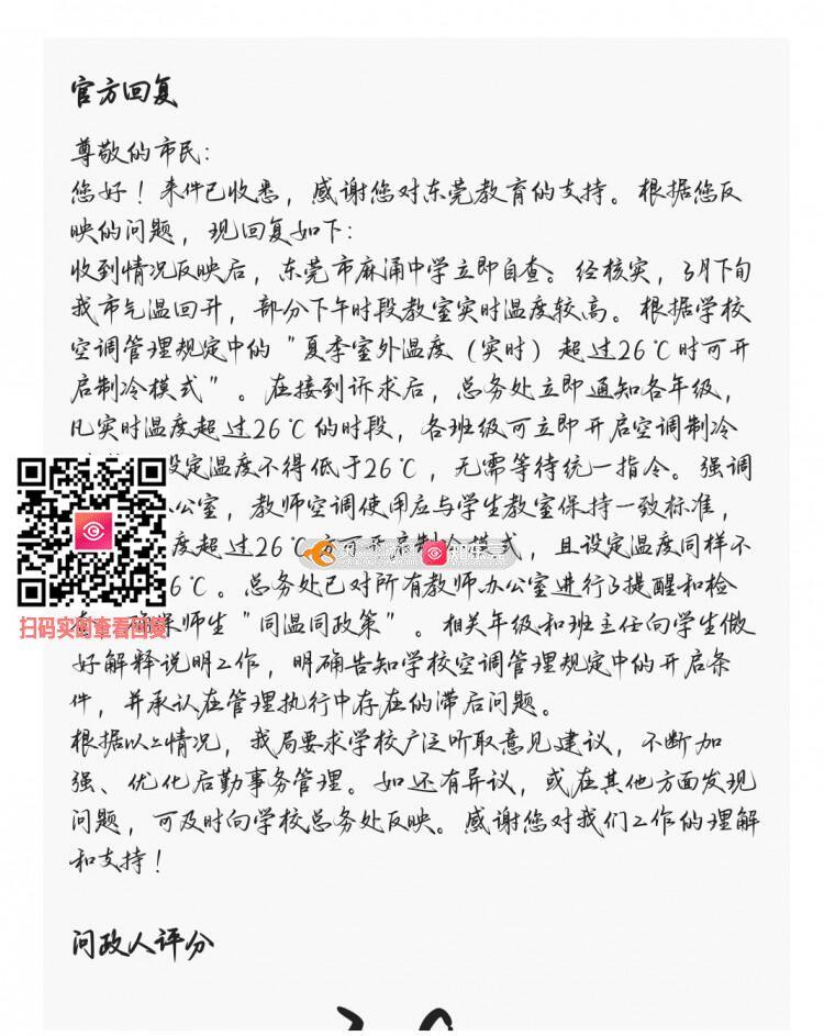 麻涌中学教室空调现在为止都还没有通过电 更没有达到温度可以让学生自己开空调这个情况 反而让班主任反馈之后也一点结果和反馈都没有