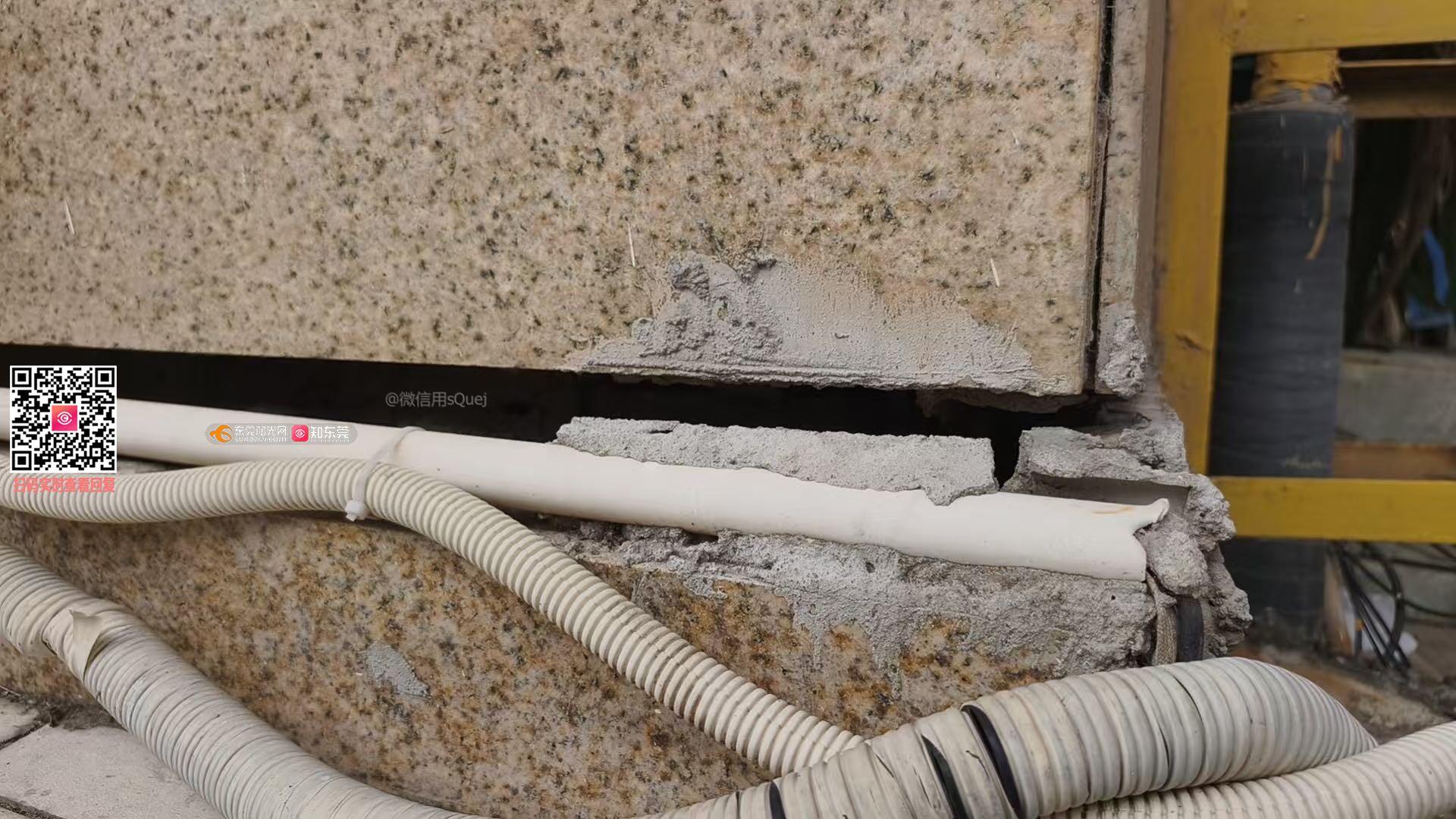 位于南城区黄金路801号东汇广场住宅楼,近期地基下陷,1楼能看到裂缝且下陷2指宽,下陷长度达20多米,昨晚车库消防水管喷水,2楼住户有承重柱裂缝。近期春雨季节,住户担忧安危。恳请调查下陷原因,是否跟附近施工有关。房子是否经得起附近这施工影响,几百户家庭能否安心住。