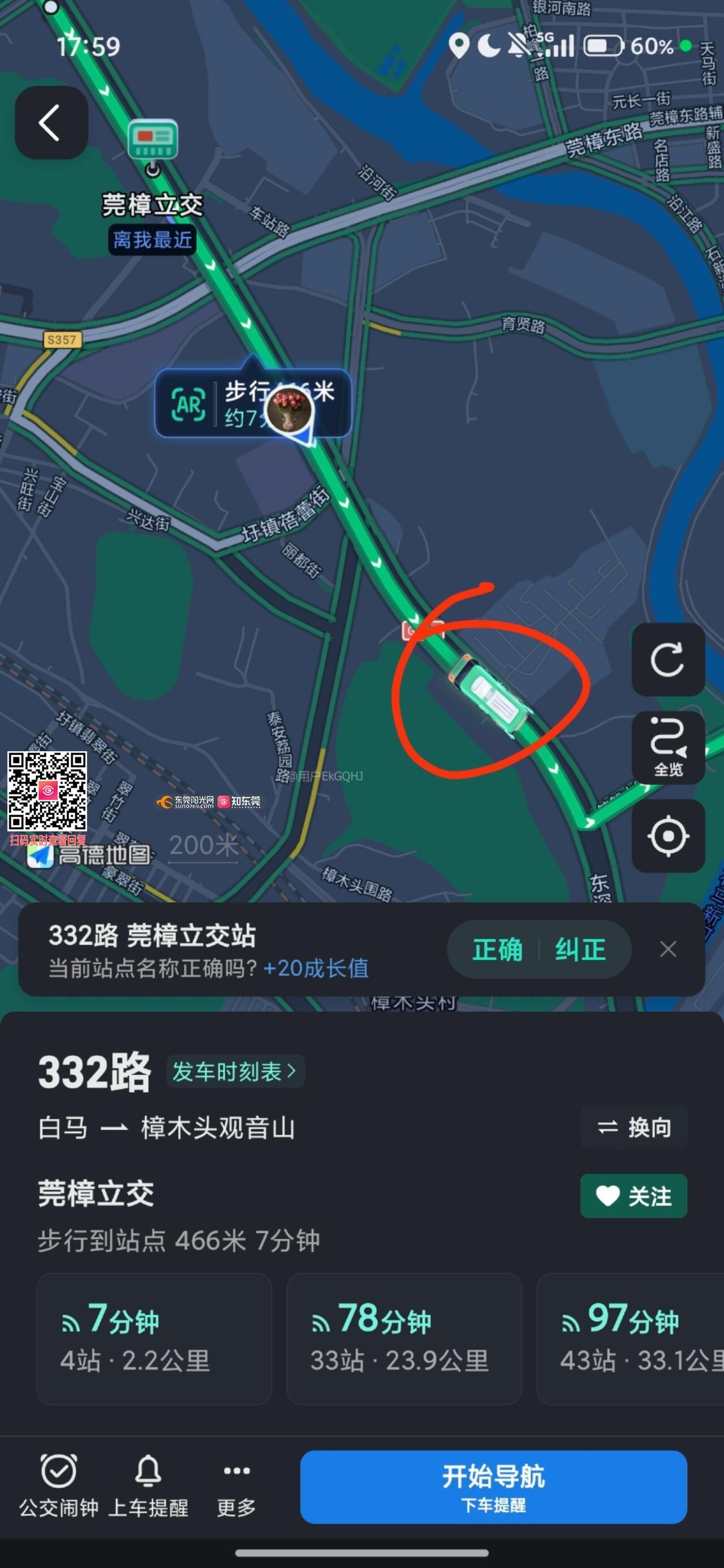 4月4日下午5时50分一辆332路东莞通公交于莞樟立交公交站经停后,未观察侧后来车,未打转向灯,立即变道,使直行一老人驾驶的非机动车险些被其碾压,经我鸣笛提醒后公交车才短暂停止,后迅速启动驶离,因下雨天车牌号码不清,大致为粤S1860(XX),驾驶者40-50岁,皮肤偏黑,双目无神,高度疑似疲劳驾驶驶,下图为事故发生后我对公交线路的截屏。希望东莞通公司加强对员工的安全驾驶培训,减少司机执勤强度