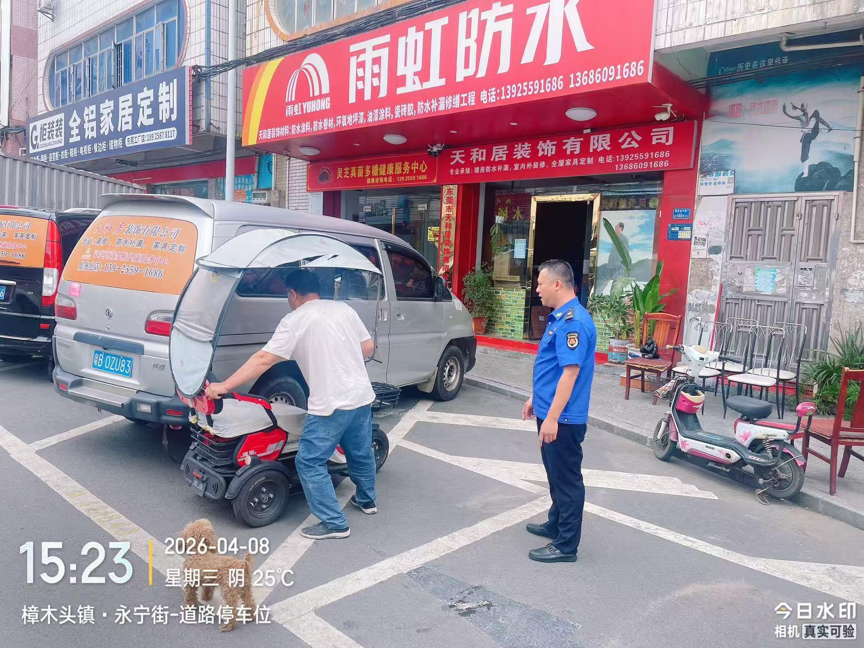尊敬的市民,您好!来信内容已收悉,现将相关办理情况答复如下: 收到反映的情况后,城管分局工作人员分别于2026年4月8日15:23前往永宁街对诉求进行办理,对占用车位的电动车、凳子等杂物进行清理,恢复车位正常使用秩序。同时,向周边商户开展宣传教育,明确告知私自占用公共停车位属于不文明行为,引导商户自觉规范自身行为、共同维护公共空间。 下来,分局强化日常巡查整治,及时处置违规占用公共停车资源行为,加强宣传引导,保障公共停车位资源的有效利用。 如市民发现城市管理方面问题,可致电城管分局24小时值班电话0769-87789226。感谢您对我们工作的理解和支持!