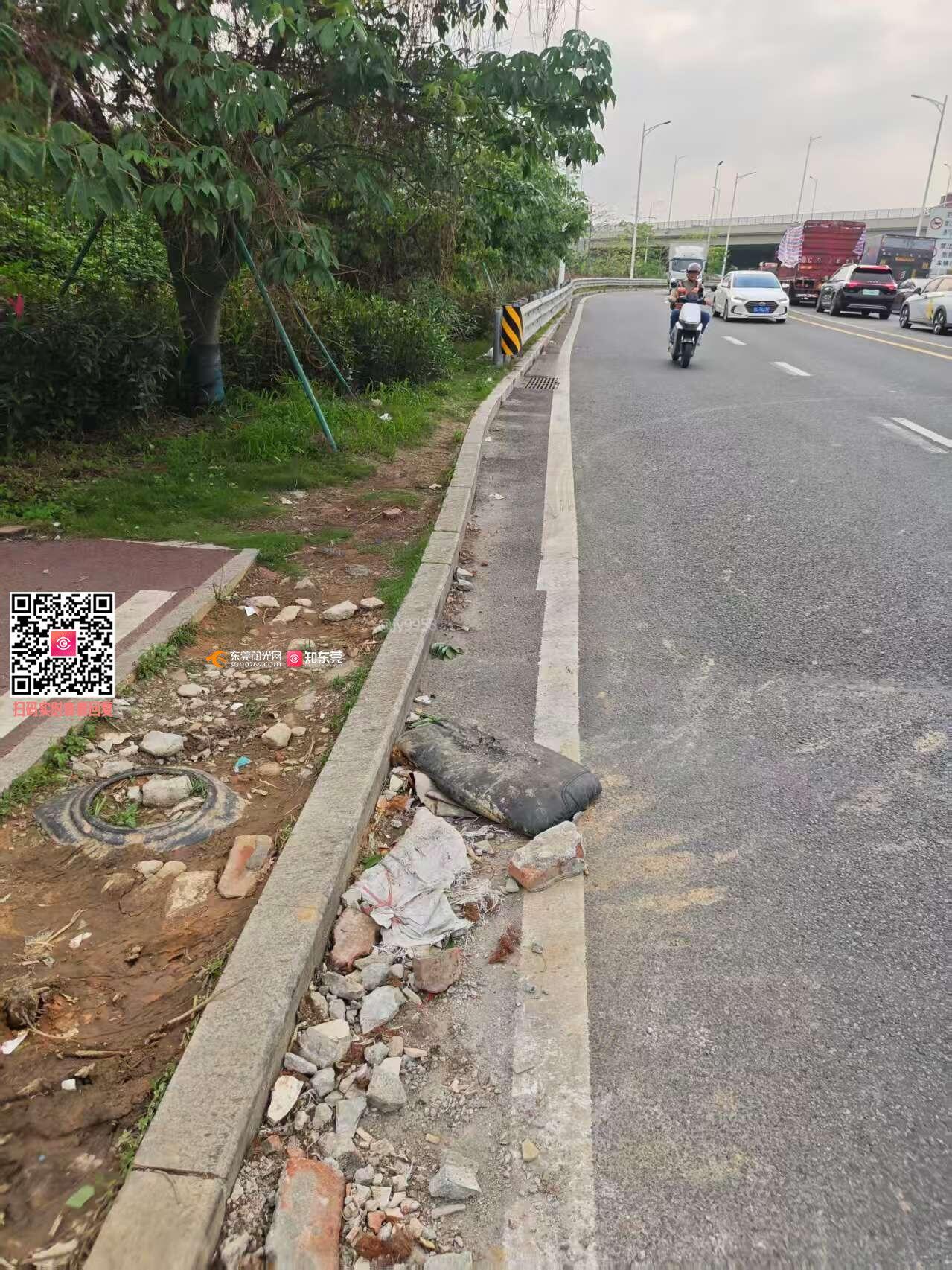 在广龙高速常平西出口(往常平方向),目前该路段已有铺设非机动车道,但是没有设置非机动车道入口,导致非机动车需要与机动车并用机动车道,存在安全隐患,恳请优化增设非机动车道入口,方便电动车安全通行。