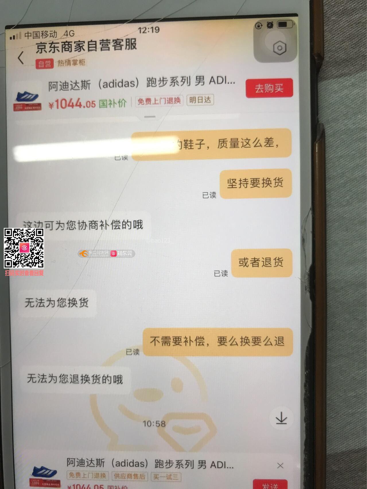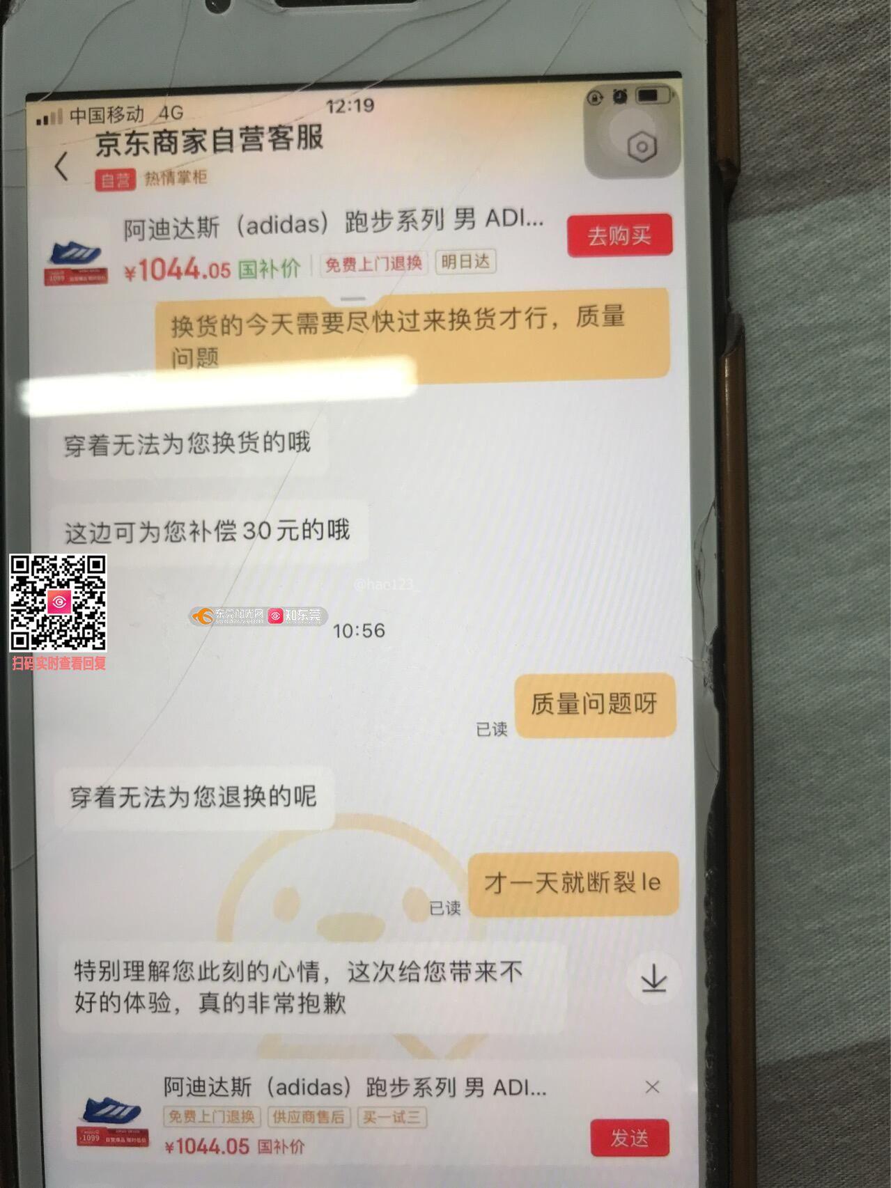 京东自营买了一双鞋,一天不到出现断底,不给退,不给换
