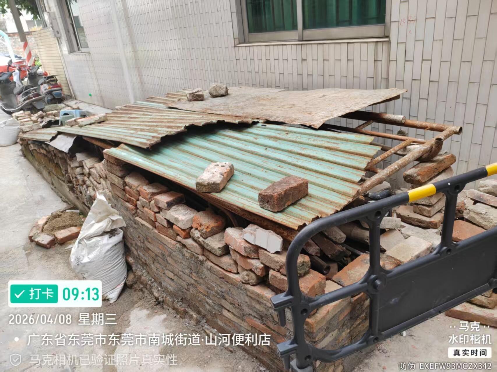 投诉南城城管局不作为。南城街道周溪环博将军路8号(定位:南城周溪山河便利店),有一违法建筑约0.5米高的围栏,霸占道路,上面搭起铁皮,下面全是建筑垃圾,老鼠为患,无人管,无人理,严重影响市容市貌及行人。现正式投诉,恳请相关部门介入督促共同处理违建行为,清理建筑垃圾,要有清理前后对比图,并回复本人。