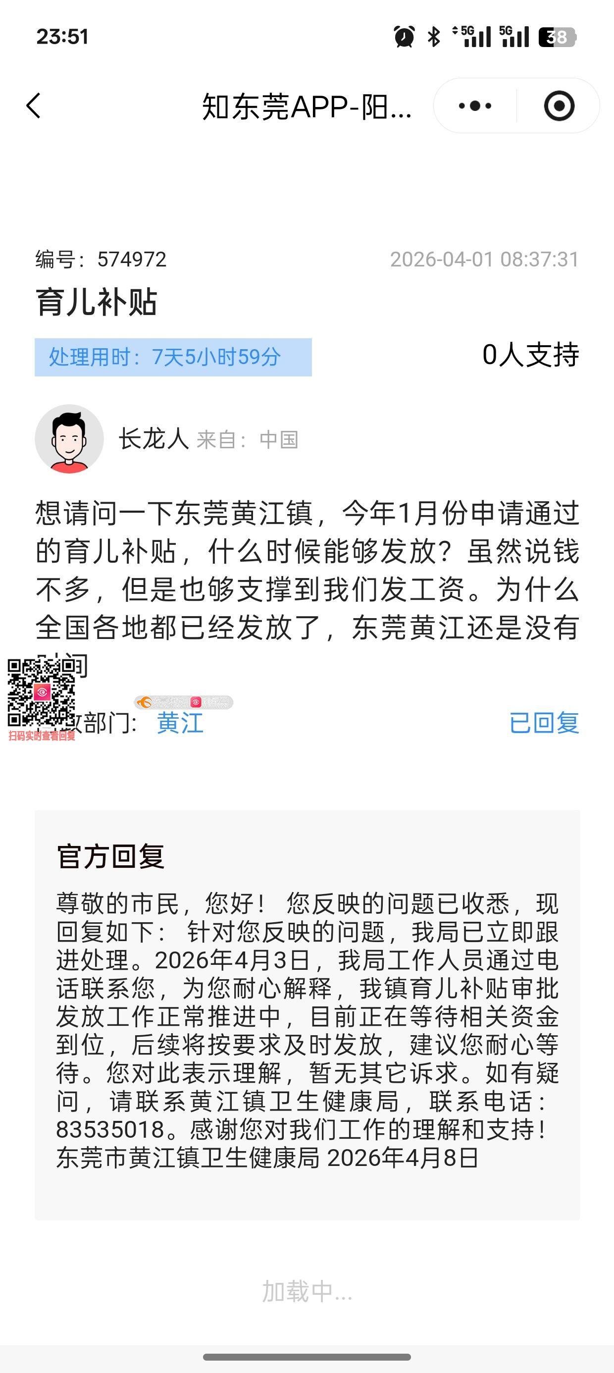 第一我问的是育儿补贴具体什么时候发放?没有明确的回答。第二回复中说的有给我电话沟通过,只不是纯纯的乱回复欺负人吗,什么时候打过电话给我,我压根一个电话都没有收到过,难道是打给鬼了,要是实在回答不了就说回答不了,为什么要搞这种为了快点结束工单而乱回复了,这样子不觉得只会寒了广大人民群众的心吗,典型的就是领着国家的钱,不办人民的事。