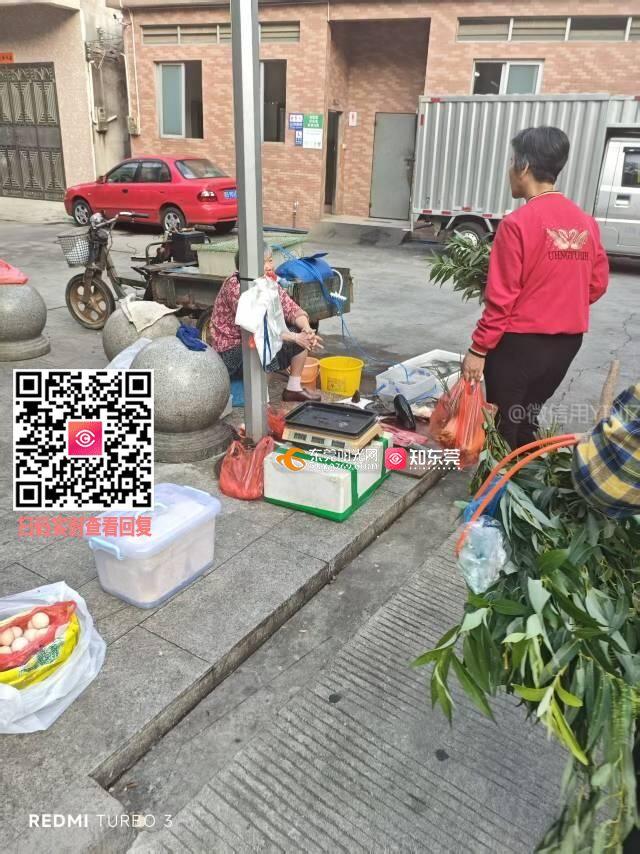 谷涌社区村口居家养老服务中心篮球场处无证经营水产品,乱摆乱卖,占道经营,无人管