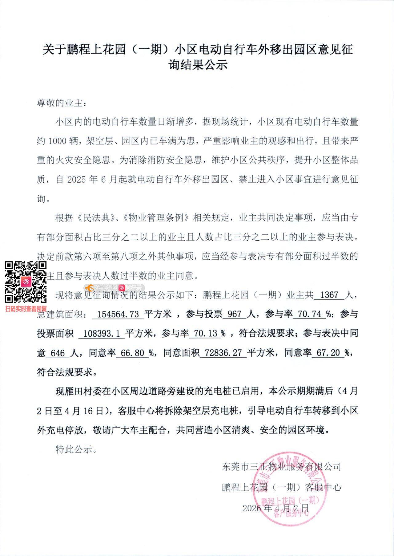 本人系三正鹏程上花园小区业主,物业以“业主投票少数服从多数决议”为由一刀切禁止电动车进入小区,但该决议存在严重违法违规: 1. 内容违法:法律仅禁止电动车进楼、进电梯、入户,不禁止进入小区公共区域停放。决议全面禁止进小区,违反《消防法》《东莞市电动自行车管理条例》。 2程序违法:投票未公示、未通知、无业主/社区监督、存在诱导投票、租户代投等问题,决议程序不合法。 要求: 1. 撤销违法决议,允许电动车进入小区地面/指定区域停放; 2. 对违法决议及违规管理行为依法处理。 投诉事项: 物业以业主决议全面禁止电动车进入小区,违法违规,严重影响业主老人小孩生活出行。 1. 决议违反法律规定,一刀切禁止进小区无依据。 2. 投票程序不透明、不规范,存在程序瑕疵。 投诉请求: 1. 介入监督,撤销违法决议; 2. 协调物业提供小区内合法停放区域; 3. 重新规范表决程序。 • 投票未公示、 • 投票无业主代表/社区监督 • 租户代替业主投票 • 投票诱导性 • 决议违反法律禁止进楼但不禁止进小区!