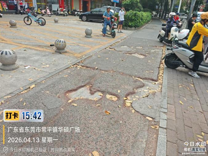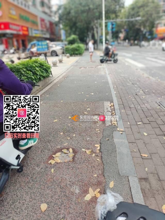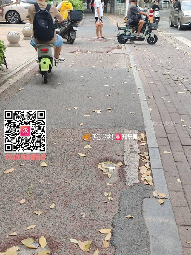 东莞常平常马路好街市到世纪康城钱大妈非机动车道坑洼破损严重