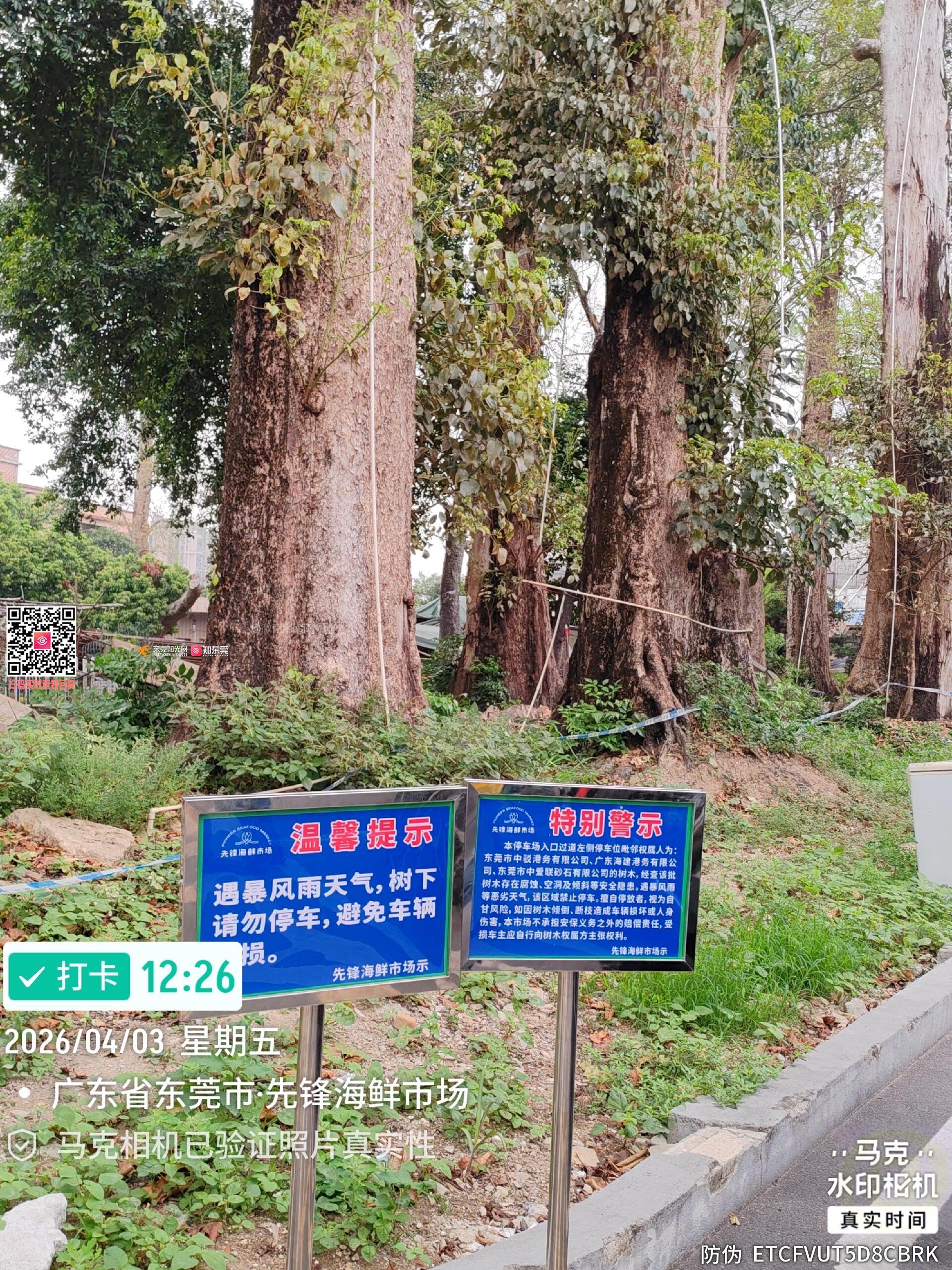 位于东莞市中驳港务有限公司、广东海建港务有限公司、东莞市中爱联砂石有限公司三方共同管辖区域内、紧邻先锋海鲜市场入口左侧通行通道处,存有约25多棵高大树木存在公共安全隐患,旁边就是先锋海鲜市场正门入口,日常人流车流较大,且停满消费者的车辆。该批树木约有4棵树干整体已大面积腐烂,出现树枝跌落或主干明显枯萎倾斜的情况,且这批参天巨大树木属于违规种植,根本是红线之外,属于霸占公共土地及道路范围,且其树木根部根本不入土掩埋,初时是乱放置随意种植,根部高于地面,随时有倒塌风险。且该区域属沙田镇先锋村码头海边长堤对面,一旦遭遇台风恶务暴风雨天气,后患无穷,危及市民、顾客、平民百姓的生命财产安全,并对我村委企业先锋海鲜市场形成极大经营风险隐患! 希望市政府、市府办等有关部门深刻重视,重拳出击整治,切底消除安全隐患,还天下老百姓一个安宁的生活环境,视人民生命安全至上,以民为本,否则,一旦思想松懈,疏忽麻痹大意,偏离执政初心,就会酿成人命,追悔莫及!再次诚恳希望市政府部门重视!谢!