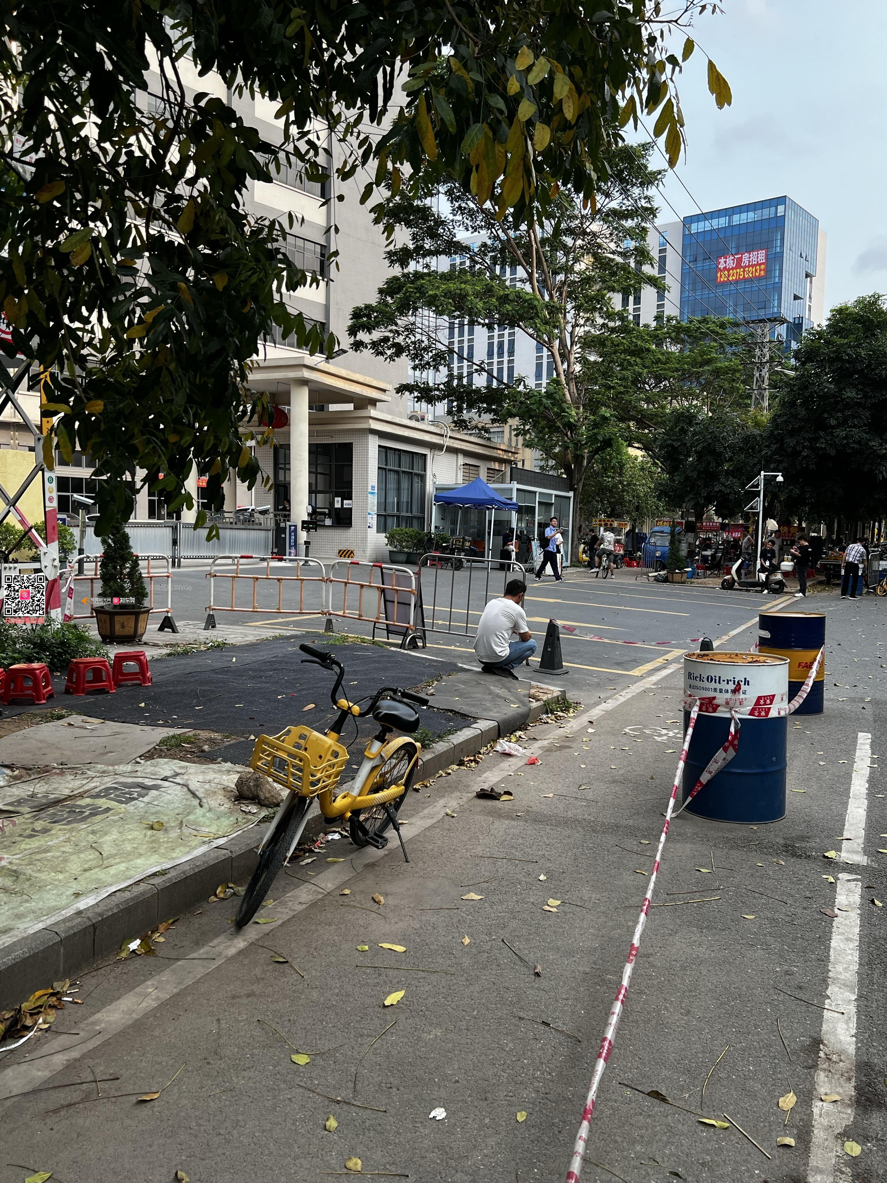 致有关部门:翔通工业园门口,工厂保安擅自在厂门口的公共区域用铁桶圈地占用人行道,以及一小部份非机动车道。希望相关部门尽快处理,以恢复路面原样。