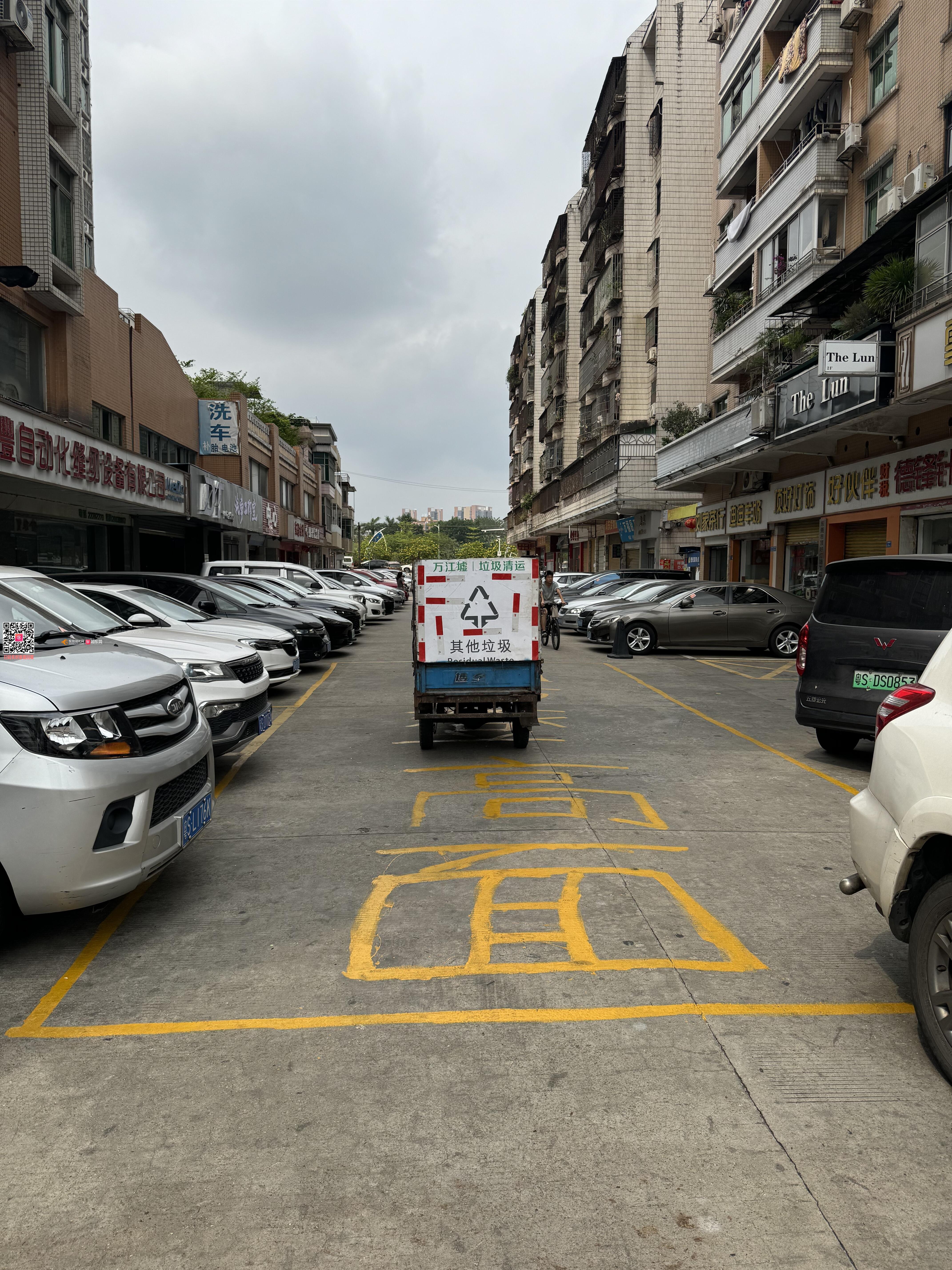 万江祥富花园部分商铺霸占政府画线车位营业。车位空置不让停导致街道停车长期乱停乱放现象