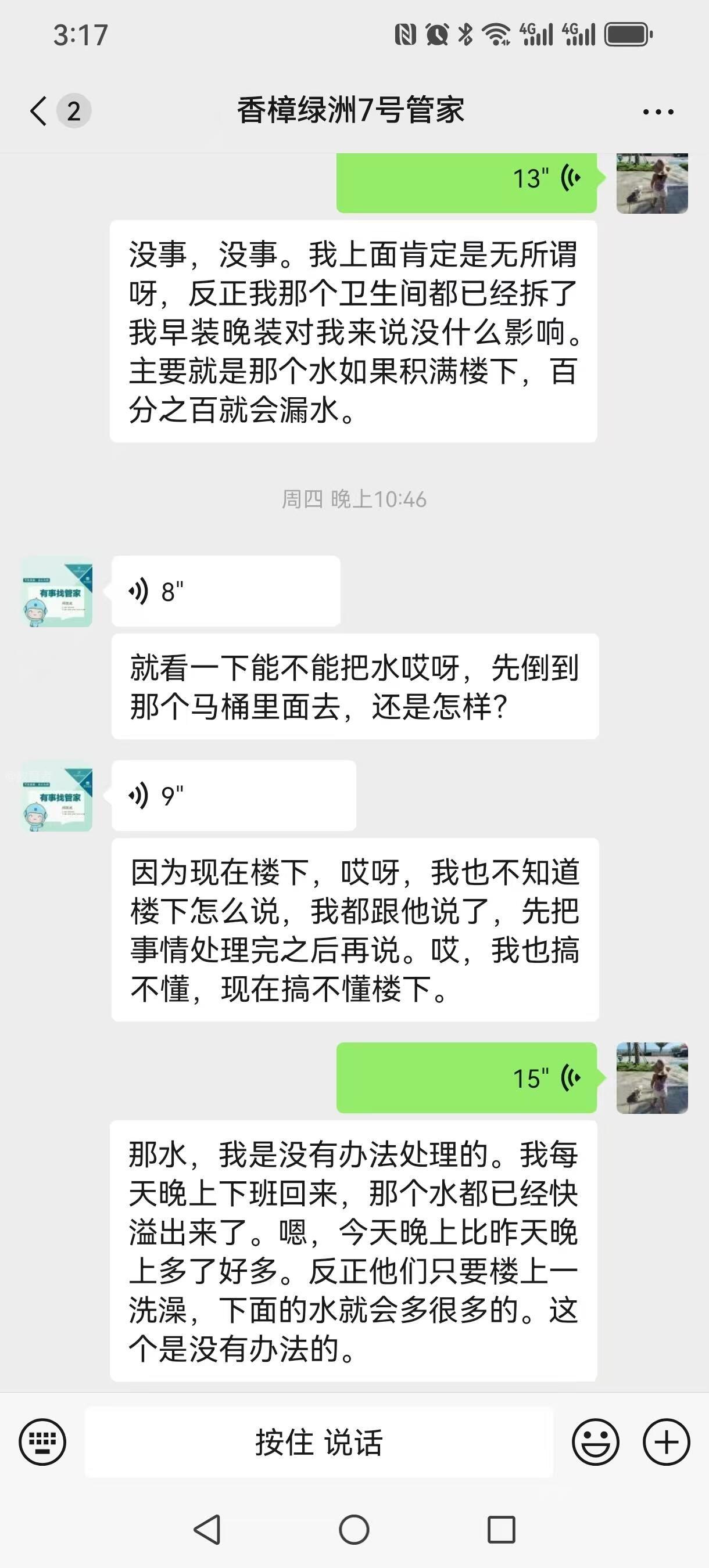 我是东莞市樟木头香樟绿洲小区54栋701单元业主。我家厕所从2025年6月3日开始持续渗水,多次向物业求助均无实质处理。无奈之下,我自行聘请专业检测公司排查,期间还曾全家外出半个月并关闭家中总水闸,但厕所依然渗水,最终确认并非我家内部漏水,而是楼栋外墙公共排水管堵塞,导致污水倒渗进我家室内,现已造成地板泡水、墙面发霉,同时也导致楼下住户漏水,楼下长期误会是我家问题并反复投诉。 发现是公共管道问题后,我第一时间将检测情况和现场图片提交给物业,物业已确认是外墙公共水管渗水。但物业至今仍以“需从五六楼业主家窗户外出维修,业主不配合”为由,长期拖延、拒不处理。 该问题已拖延近一年,排查漏水的费用均由我先行承担。如今雨季来临、台风将至,若物业仍不及时疏通维修,存在极大安全隐患: 1. 渗水长期浸泡墙体线路,极易引发漏电、短路甚至火灾; 2. 台风天气后再进行高空维修,会大幅增加高处坠落安全风险; 3. 公共排水管属于小区共用设施,依据《民法典》《物业管理条例》《东莞市物业管理条例》相关规定,维修养护责任依法属于物业服务企业。 现恳请相关部门介入督办,责令物业立即履行维修责任,对外墙公共排水管进行疏通修复,消除安全隐患,并承担相应责任