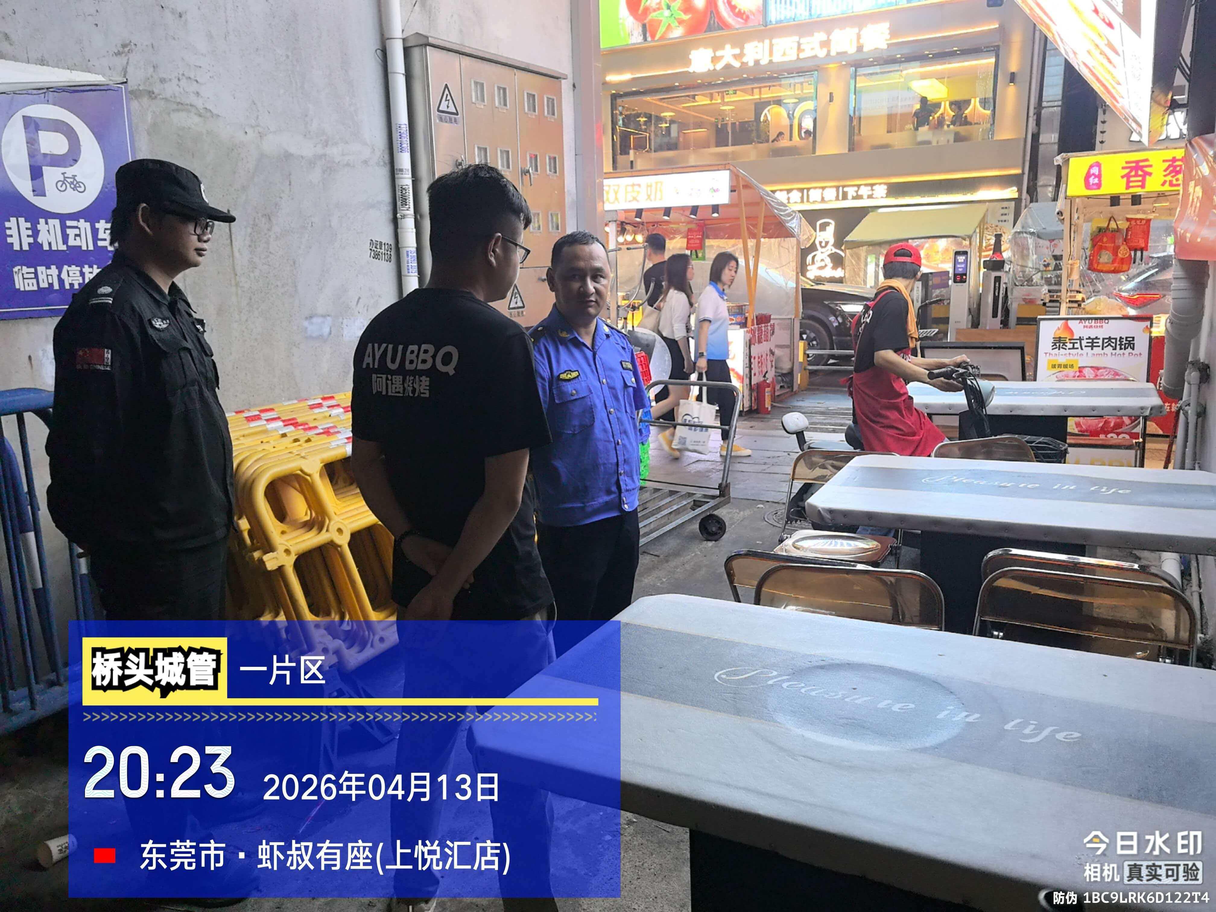 尊敬的市民,您好!您反映的问题已收悉,现东莞市城市管理和综合执法局桥头分局、桥头镇莲城社区回复如下:收到您反映的情况后,东莞市城市管理和综合执法局桥头分局工作人员于2026年4月13日12时通过电话与您取得联系,但未能接通。东莞市城市管理和综合执法局桥头分局工作人员于2026年4月13日19时13分联合莲城社区前往现场进行核查。经核查,现场未发现店铺门口摆放桌子,但有凳子供客人排队等号。东莞市城市管理和综合执法局桥头分局工作人员随即对店铺负责人进行了劝告教育,要求其落实整改,不得占道经营。2026年4月14日18时57分,东莞市城市管理和综合执法局桥头分局工作人员再次前往现场复查,未发现存在占道经营行为。下来,东莞市城市管理和综合执法局桥头分局将加强对该区域的日常巡查与监管力度,维护整洁有序的市容环境。如有疑问,请联系东莞市城市管理和综合执法局桥头分局,联系电话:0769-83451278;桥头镇莲城社区,联系电话:0769-81029155。感谢您对我们工作的理解和支持!
