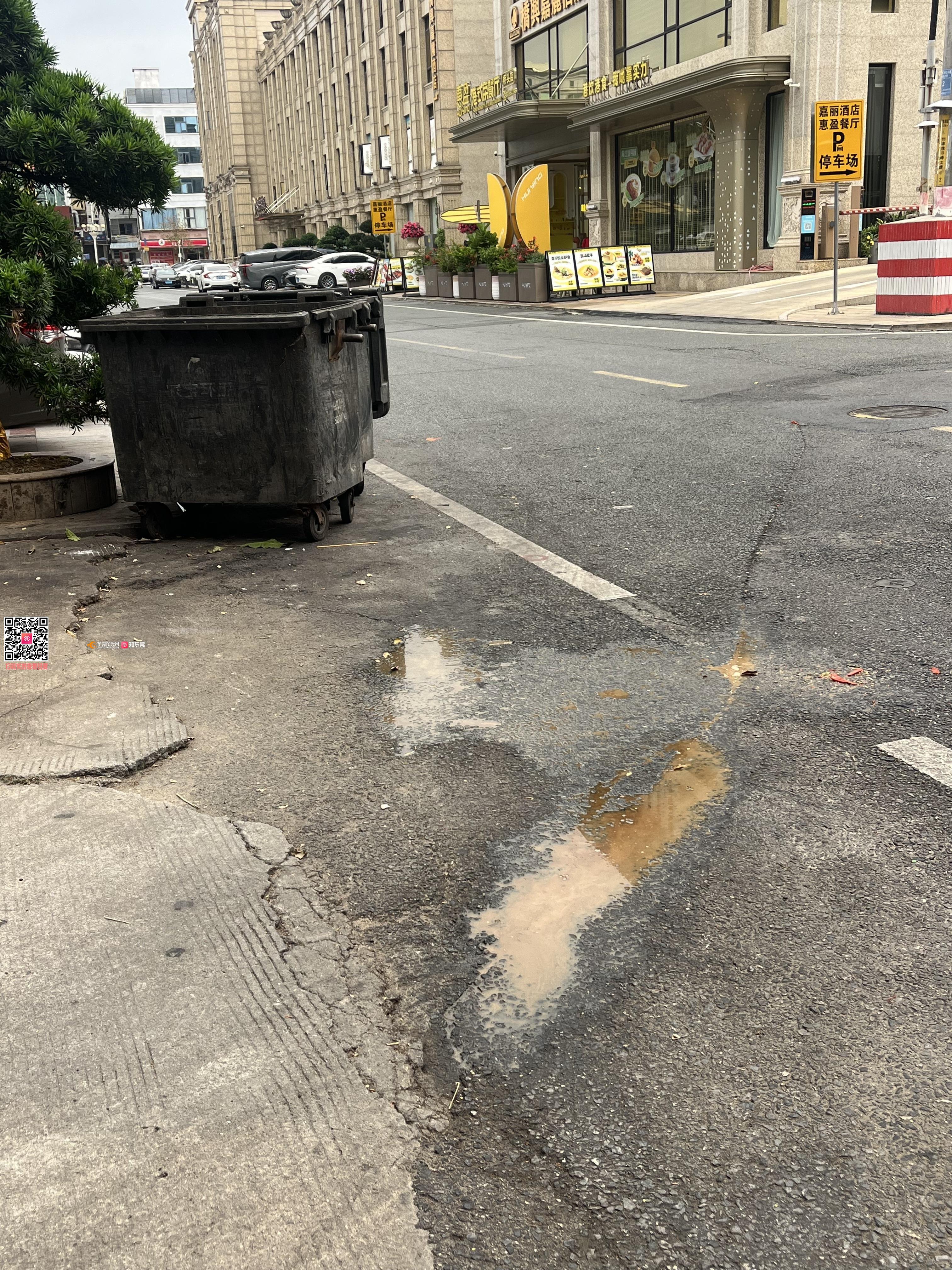 桥头镇宏达中路3号电信宿舍门口的垃圾桶很脏很臭,经常有污水流出地面,请相关部门处理,谢谢