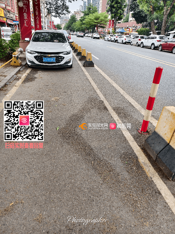 寮步金兴路源悦段飞机动车道设置问题,1.机动车停非机动车道,管理需加强; 2.当前的非机动车道宽度却让个别人员停汽车,而非机动车又骑在线外,加剧了事故风险。 建议1.加强对非机动车道管理; 2.适度缩窄非机动车道,不让汽车有停放空间,保证非机动车通畅.
