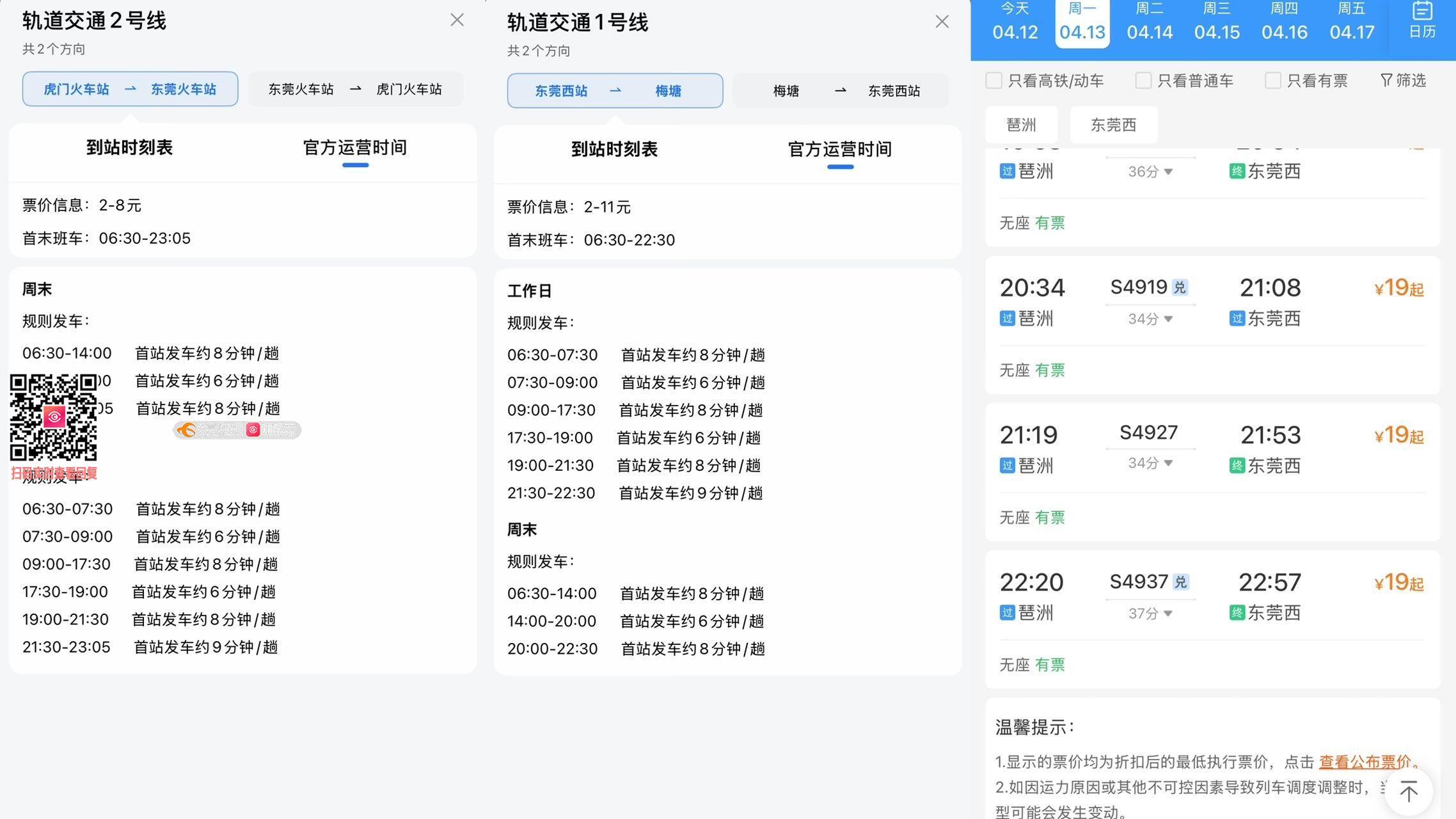 东莞地铁1号线周末运营时间建议到晚上23:20