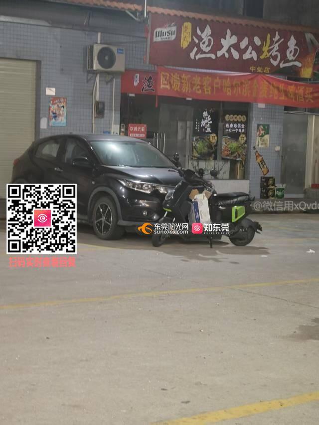 东莞市中堂村创业中心渔太公烤鱼店霸占公共车位,公共车位正常停车的情况下,连续两个晚上使用电动车拦车头不让驶离,还用胶箱故意碰撞车身,私人店铺长期霸占周边公共车位,无人处理,村领导不作为
