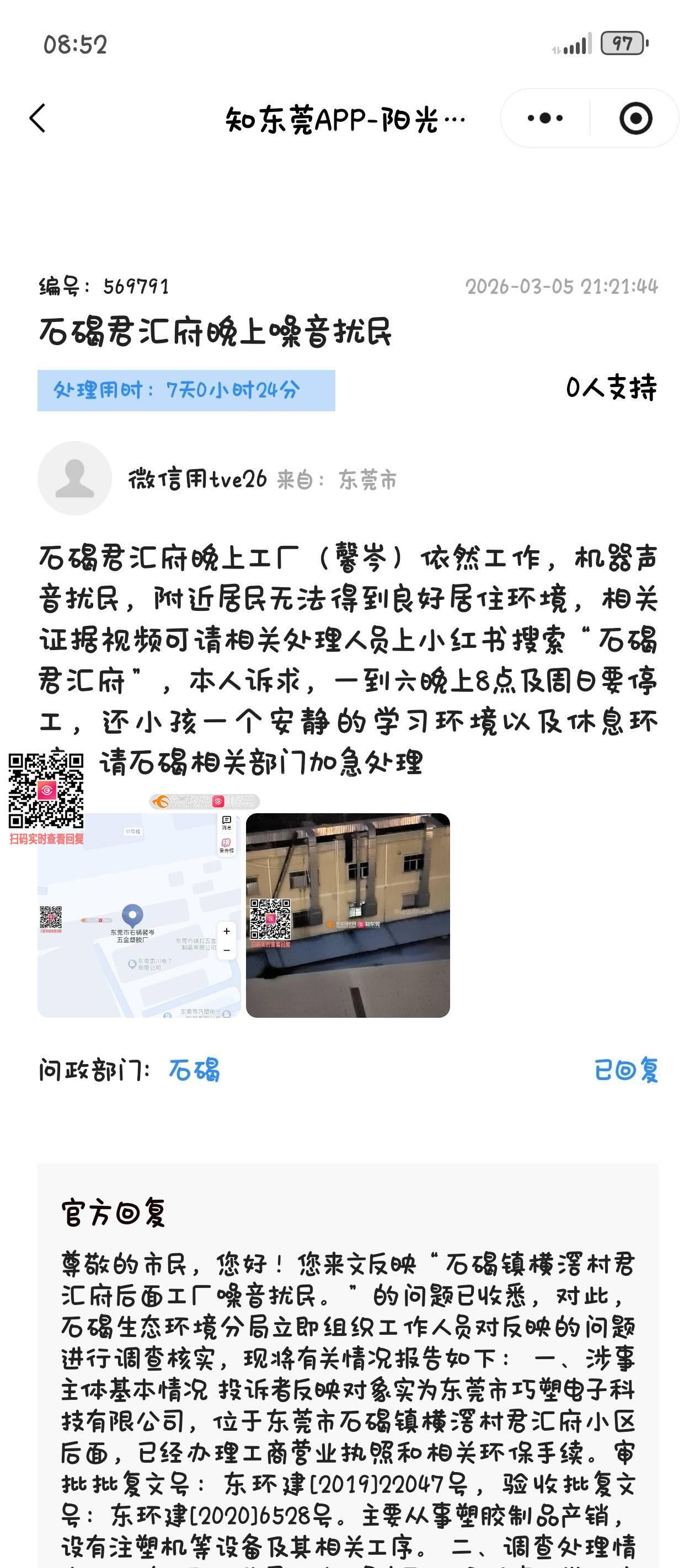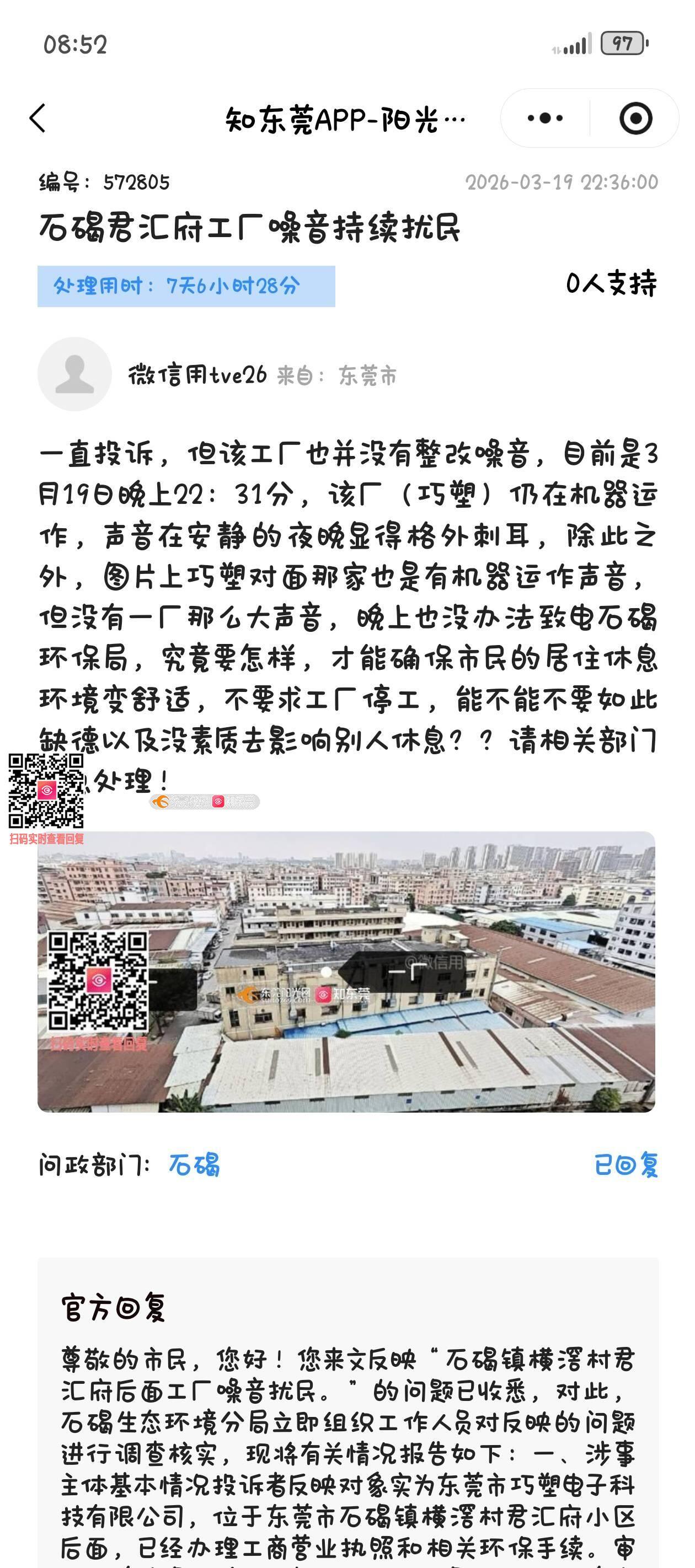 石碣君汇府背后工厂(巧塑)噪音整改了吗