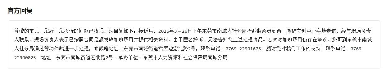 投诉人力资源和社会保障局南城分局