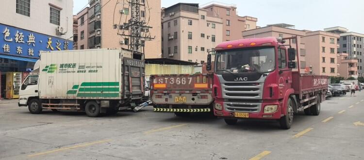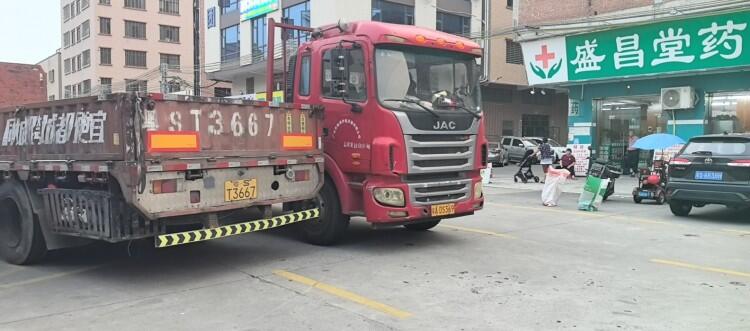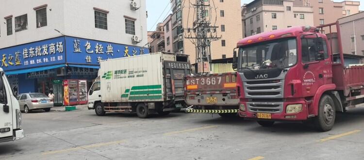 东莞市高埗镇冼沙村德庆路38号(佳东超市)对出的大路天天都有几辆大货车长期停在路中间,而且将出入口都挡住了,完全挡住了出入车辆的视线,完全看不到行人与过路的车辆,造成了非常严重的交通事故隐患。由其是晚上,附近是居民聚集地,有几次差点发生行人碰撞事故,请交通部门去将!违停的大货车进去驱赶。