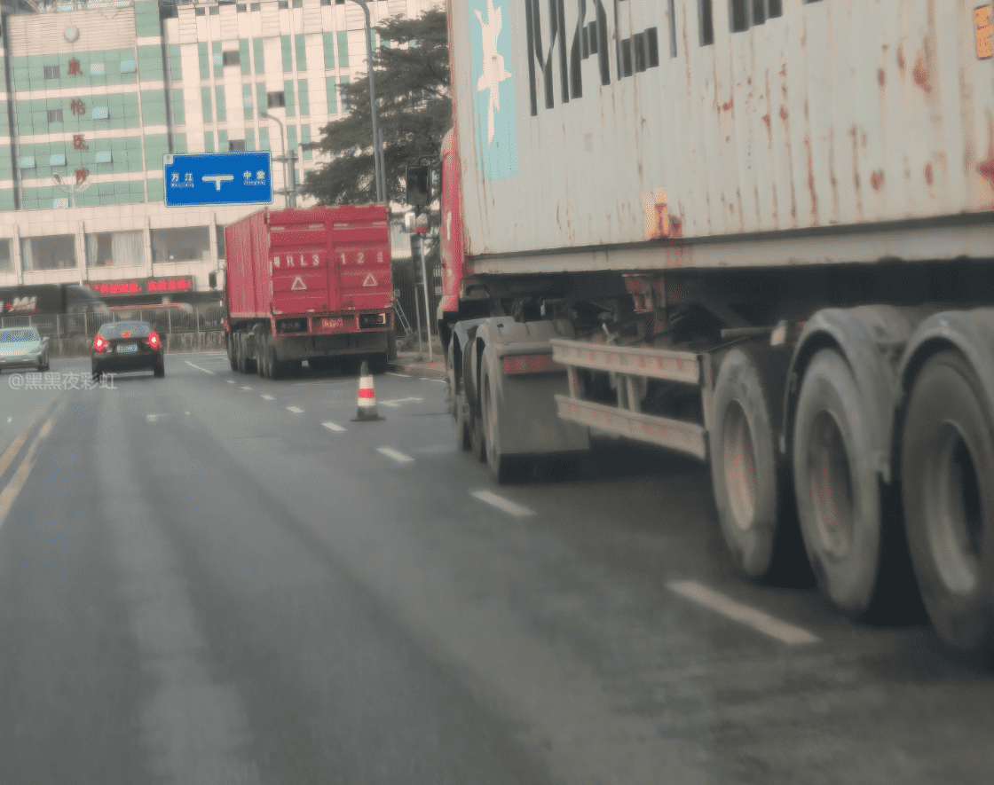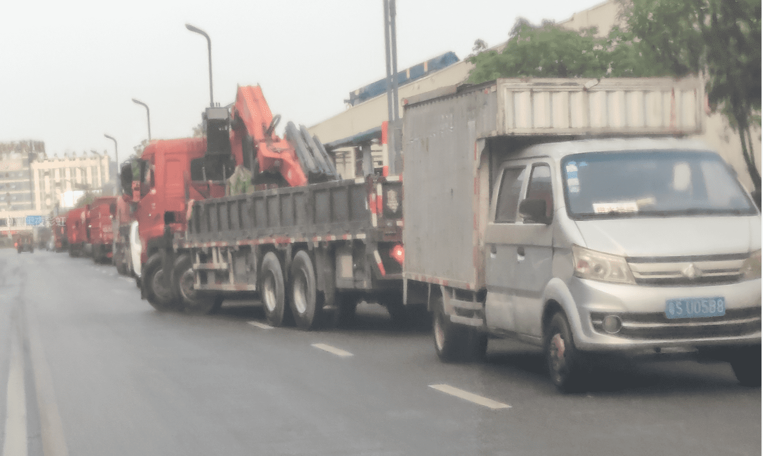 万江滘联路与莞穗路交界,自农商行到莞穗路口这段400米左右的道路,停满了各类大型超长超大货车,且无日无夜地乱停乱放,造成极大交通安全隐患,一来霸占整条道路,导致往来车辆行车路面减少一半,二来严重遮挡视线,往来行人、小车、校车等等都避让三分。请交警部门立即处理, 在道路安放石墩,设置电动自行车专用道、行人专用道,反正设法阻止这些巨型货车违法停放。