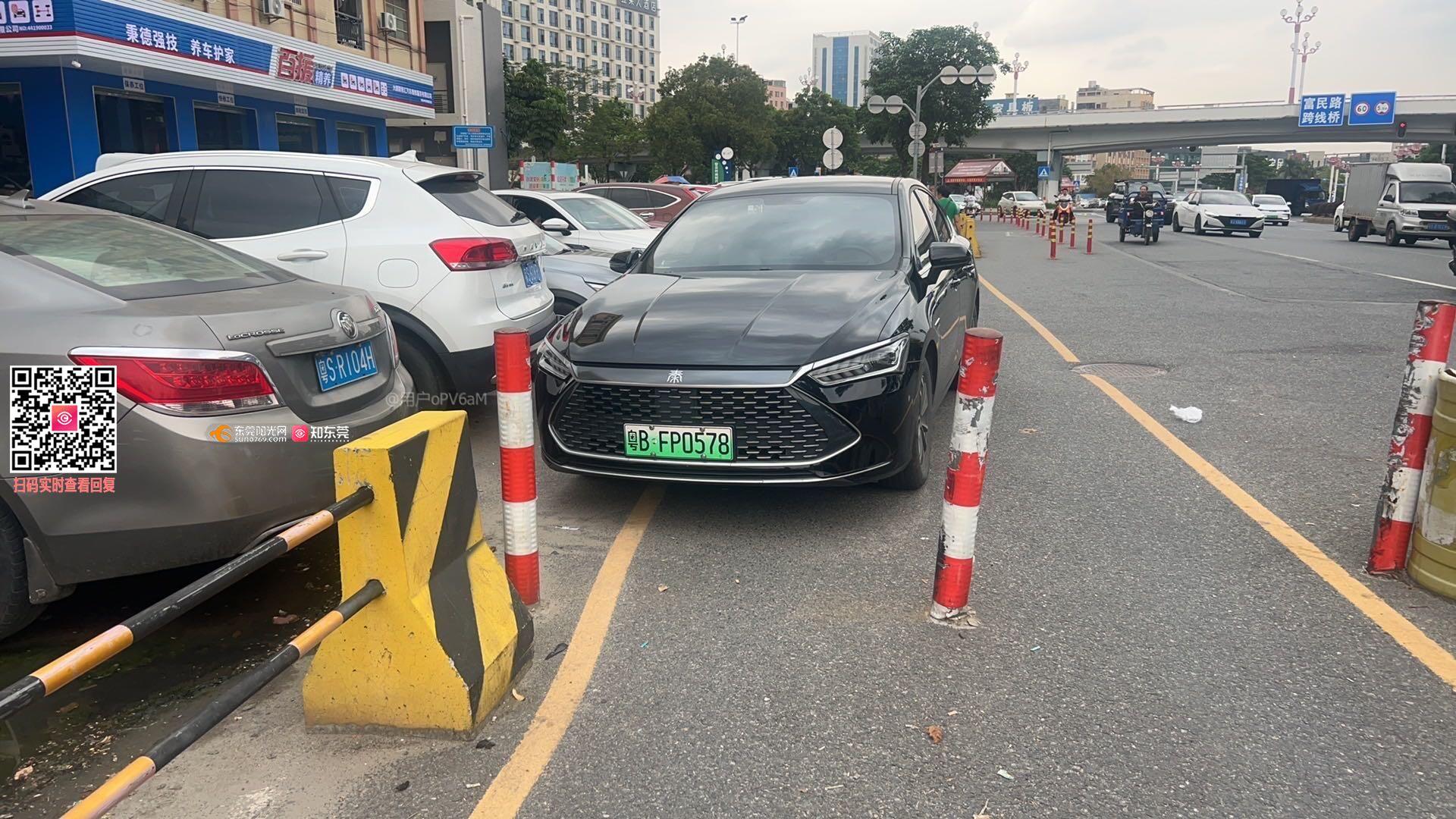 大朗富民北路跨线桥至大朗公安局大门口路段,机动车,僵尸车长时间违停在非机动车道出入口,斑马线,机动车道上,双车道变单车道,市民寸步难行,交警部门懒作为,不作为,一直没看到有改善