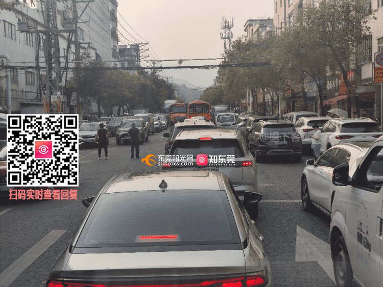 黄江拥军二路道路两旁乱停乱放导致拥堵
