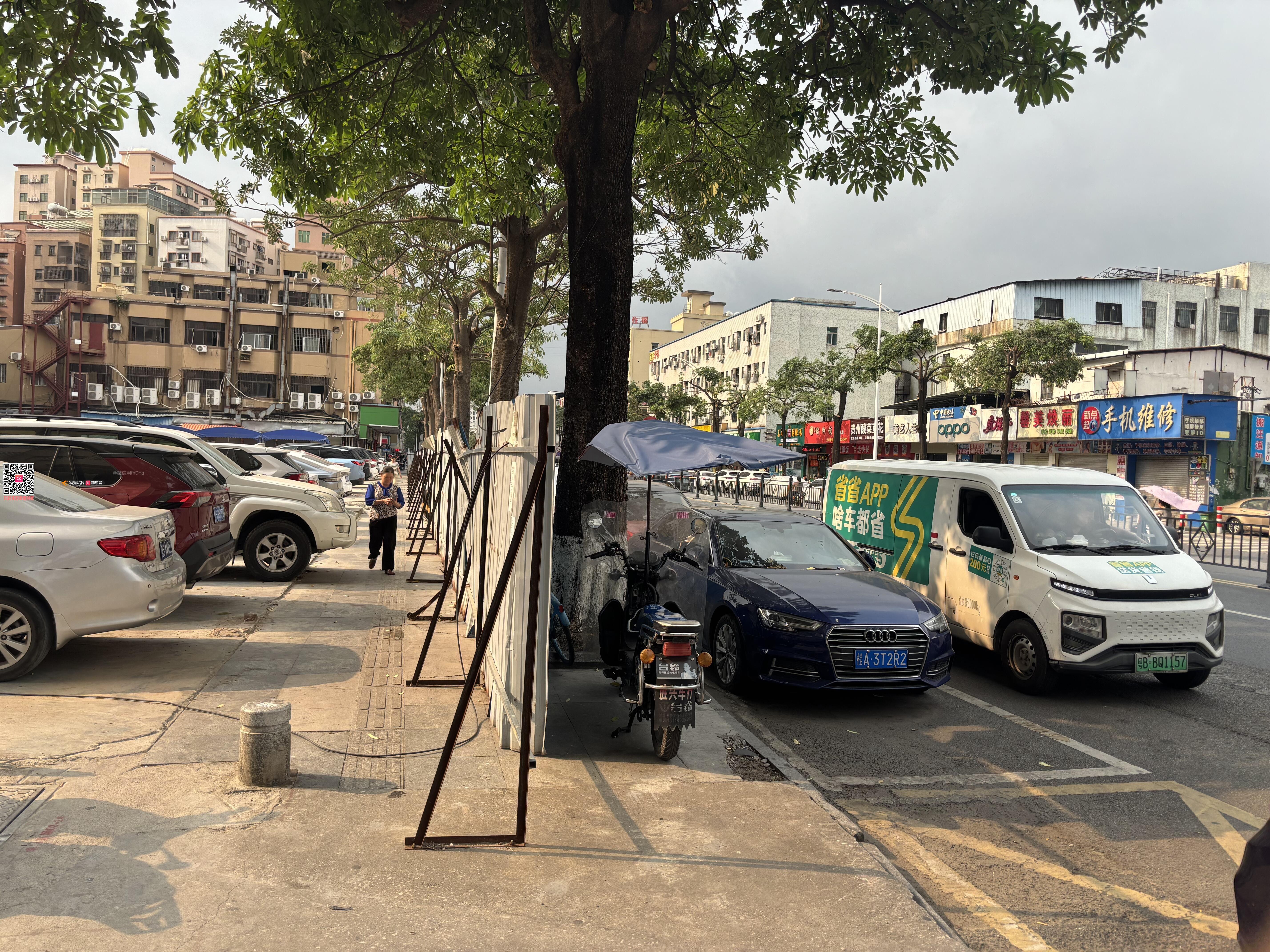 长安横增路增田老市场路段,25年拆除废弃建筑,围挡占用人行道;后期围挡长期不处理,不施工,造成行人,非机动车无法通行,行人非机动车要经过需要走在马路上通过,存在极大安全隐患