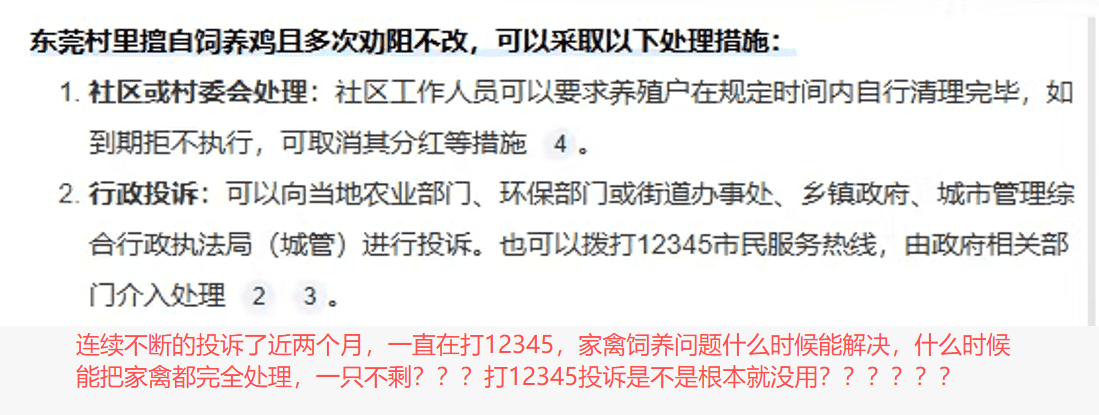 村民擅自饲养家禽一直不处理究竟有没有人实际去解决、处理家禽