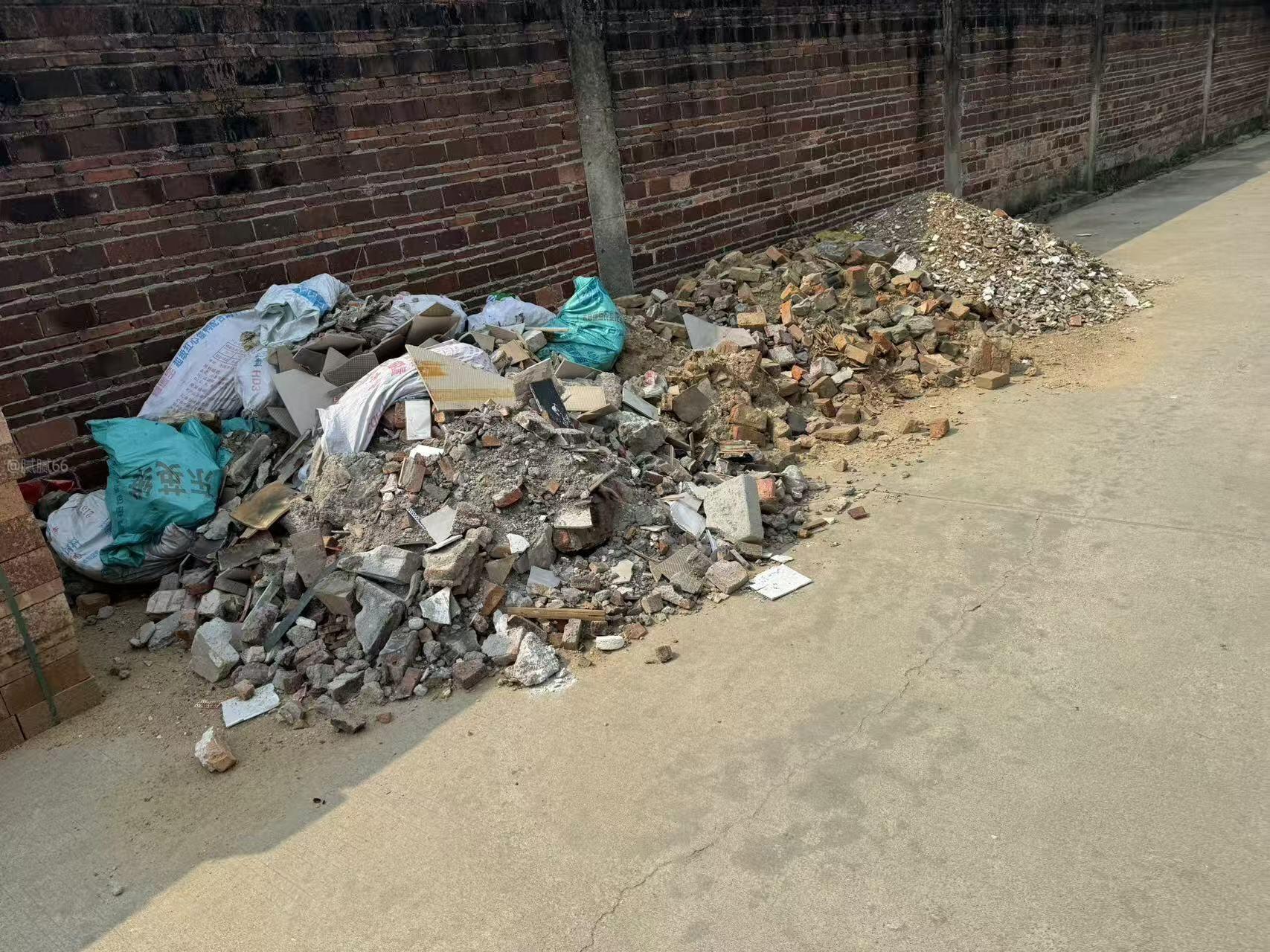 常平镇岗梓村三区停车场出入口周边到处丢放建筑垃圾