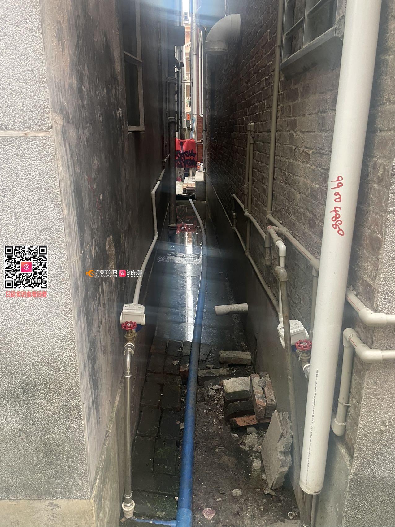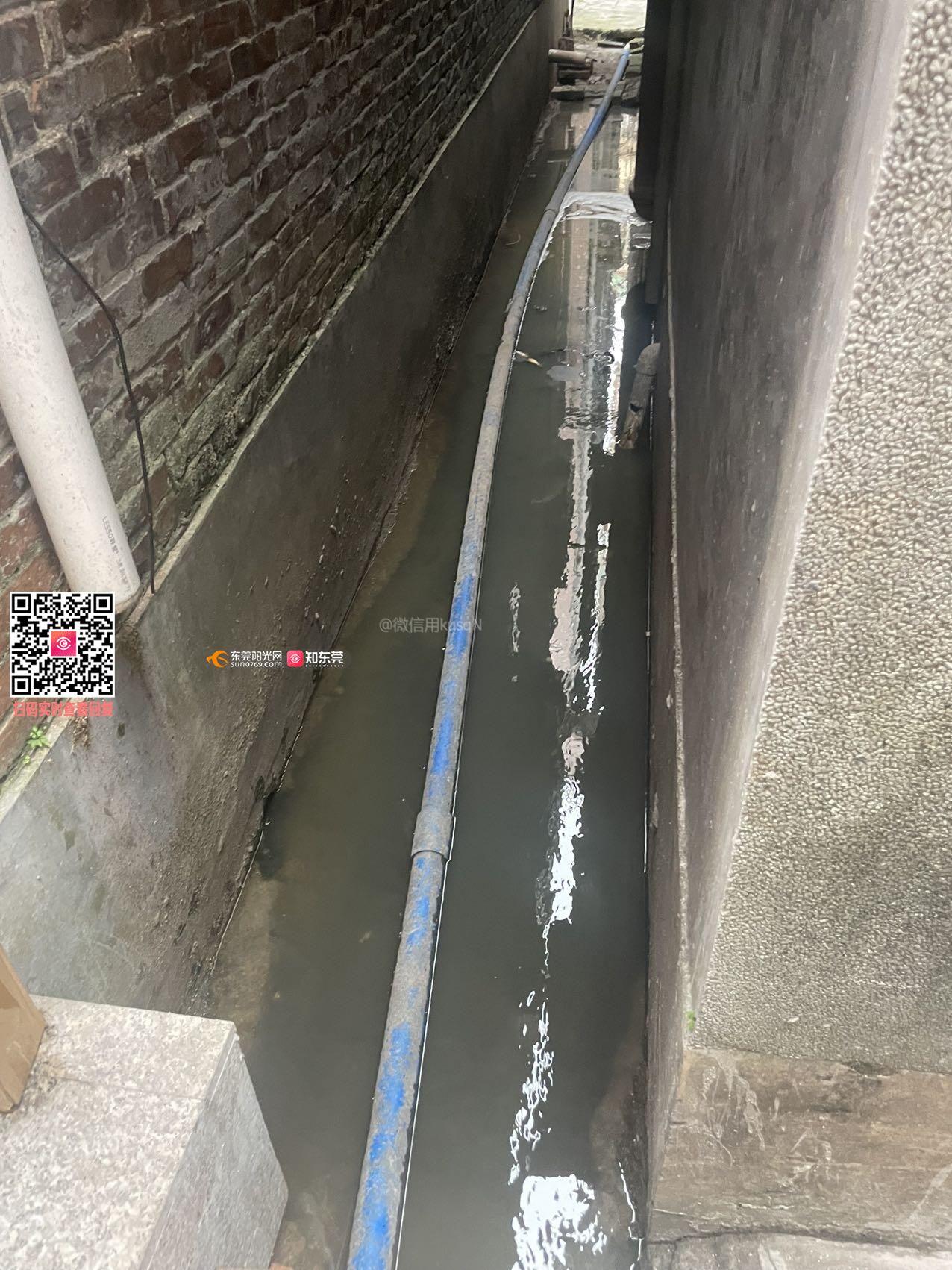 巷子过道因不明原因积满污水,产生大量蚊子