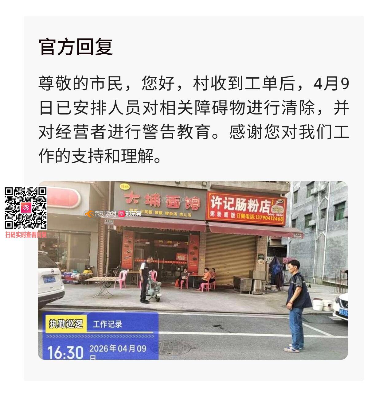 再次举报横沥镇村尾村市场三街大埔面馆和许记早餐店,请尊敬的村尾各位村官来看看,前几天你们回复说已经处置并警告过该店,警告完又变回老样子了,现在更离谱,连霸两个车位,很好奇你们是怎么警告这个老板的?是你们的警告不起作用,还是这个老板太*****,让你们束手无策?这样让我们住在三街的住户怎么停车?停马路中间吗?要是你们对这种行为束手无策的话,我们住户只能求助12345了。
