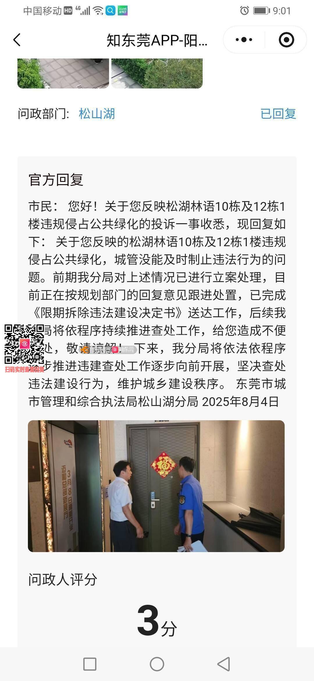 松山湖松湖林语12栋101违法硬化公共绿化带为什么不处理