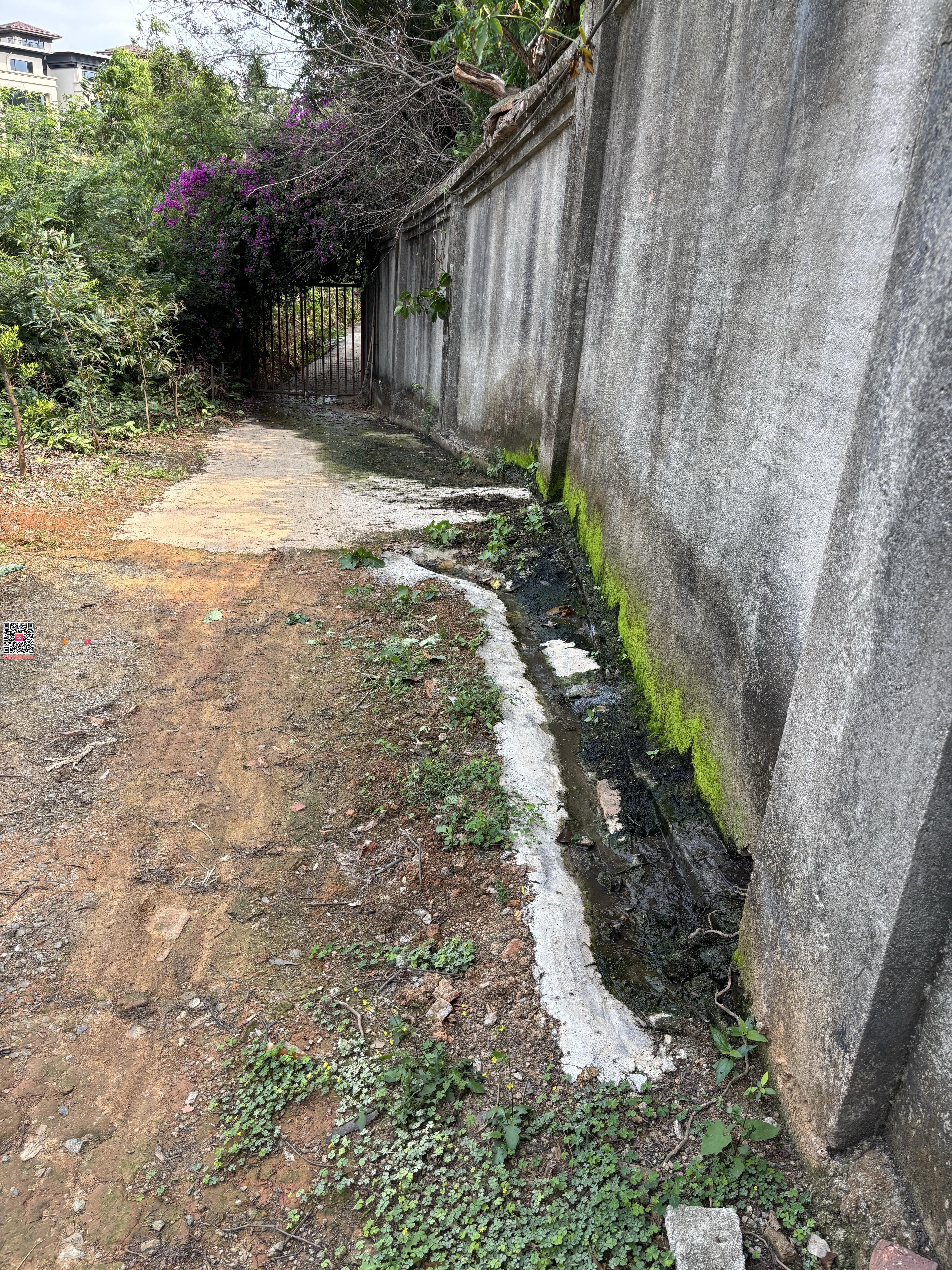 高尔夫球场与楼仔水库侧外墙长期有水流出,气味难闻,导致村民进入果园的道路湿滑难行,严重影响村民的健康及进出安全。望有关部门重视并帮忙解决问题。