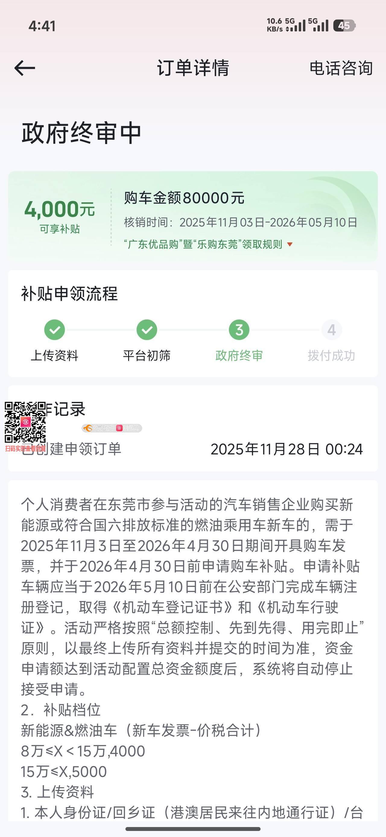 本人车架号LVVDC21B3SDJ56362于2025年11月28日进行申请,同期甚至更晚的购车人申请已经完成甚至已经拿到补贴,而我为何如今政府终审都没有通过?现申请查询:本人目前申请环节是否存在资料问题卡审?