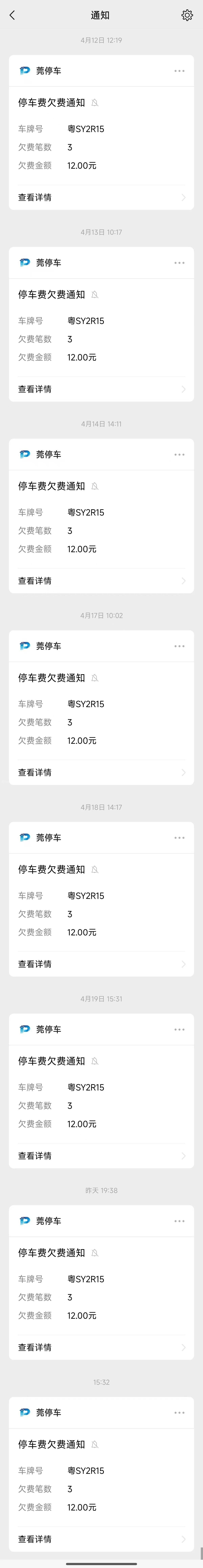 莞停车公众号不间断通知提醒造成骚扰