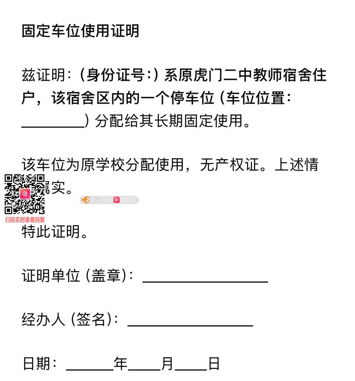本人系原虎门二中教师宿舍住户。虎门二中已关闭多年,小区无物业、无业委会。本人长期固定使用小区内一车位,需报装个人自用充电桩。 一、核心障碍 经不动产中心和社区核实,本宿舍区产权人系虎门中学(正常运营)。电网客户经理明确告知:需由产权人虎门中学在附录1、附录2上盖章,并提供固定车位使用一年以上证明,方可受理报装。 然而,虎门中学虽为产权人,但与虎门二中教师宿舍无直接管理关系。二中已关闭,宿舍日常管理由社区和住户自行负责。虎门中学是否愿意或有义务配合盖章,存在不确定性。 二、政策依据 1. 2026年国家六部门细则明确:充电桩安装资格不再以产权为唯一标准,合法固定使用权为核心条件。 2. 广东省供电报装规则:无法提供车位权属证明的,可由村(居)委出具一年以上车位使用权证明。 3. 东莞中院判例:相关主体应配合业主安装充电桩,出具证明是必备程序,不得以各种理由拒绝。 三、恳请事项 1. 恳请明确:产权人与实际使用人分离的情况下,虎门中学是否有义务配合盖章?如有,恳请虎门镇政府协调其出具。 2. 如产权人无法或不愿配合,恳请协调供电部门提供替代方案:通过现场勘查并结合社区出具的长期使用权证明,替代产权人盖章。 3. 恳请虎门镇政府协调社区,依据省规则出具车位长期使用权证明。 4. 恳请针对“学校已关闭、产权与实际使用分离”的特殊情况,统一出台解决方案。 四、本人承诺 本人长期固定使用该车位,愿配合现场勘查,承担安装后安全管理责任。恳请协调解决,感谢!
