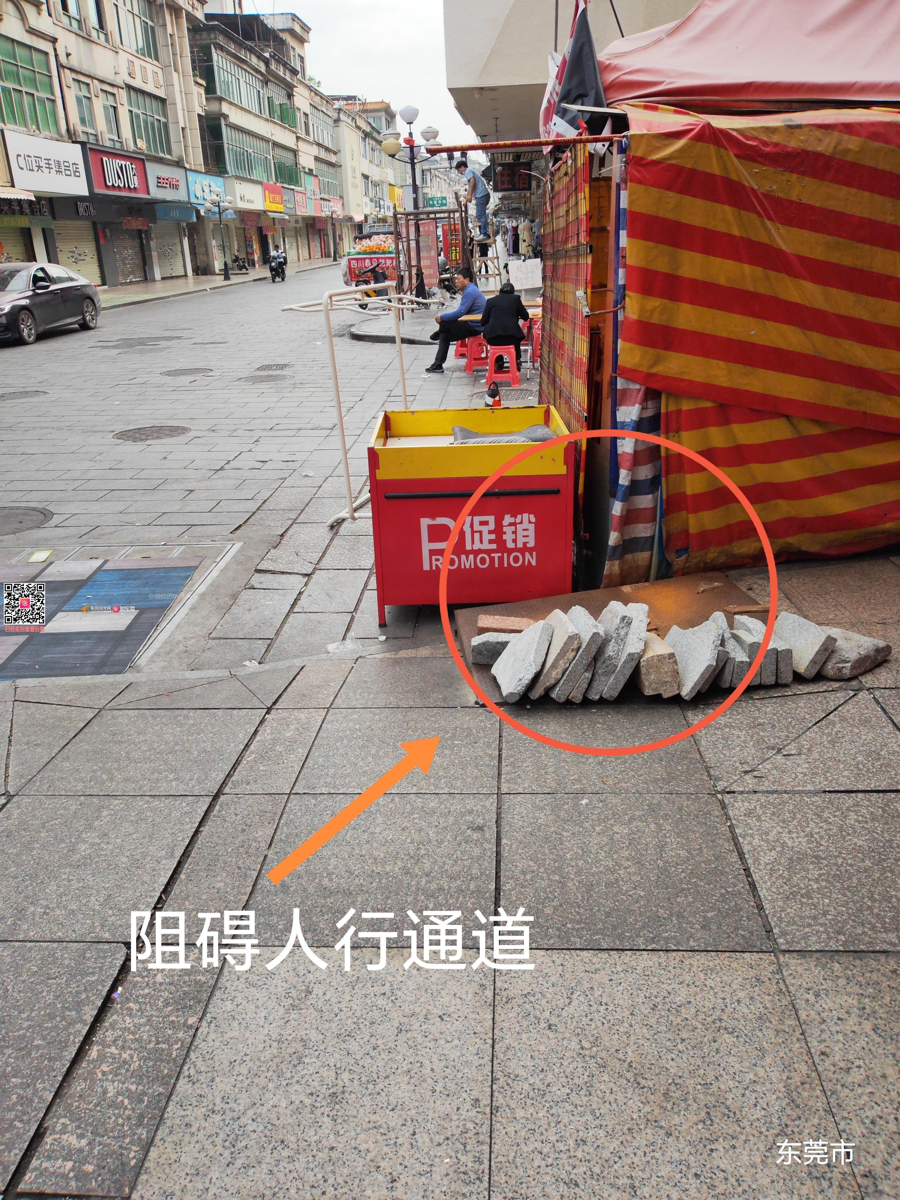 违规搭建,占道经营影响市容市貌,影响行人通行,老人小孩轮椅残疾人车无法正常通行。行人通过路口与所占道经营发生剐蹭时态度嚣张恶劣。望有关部门重视解决此问题。地址:大朗镇长富步行街二街世外桃源店