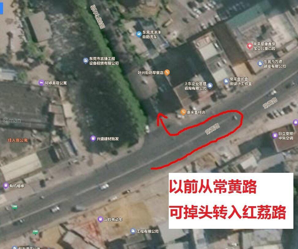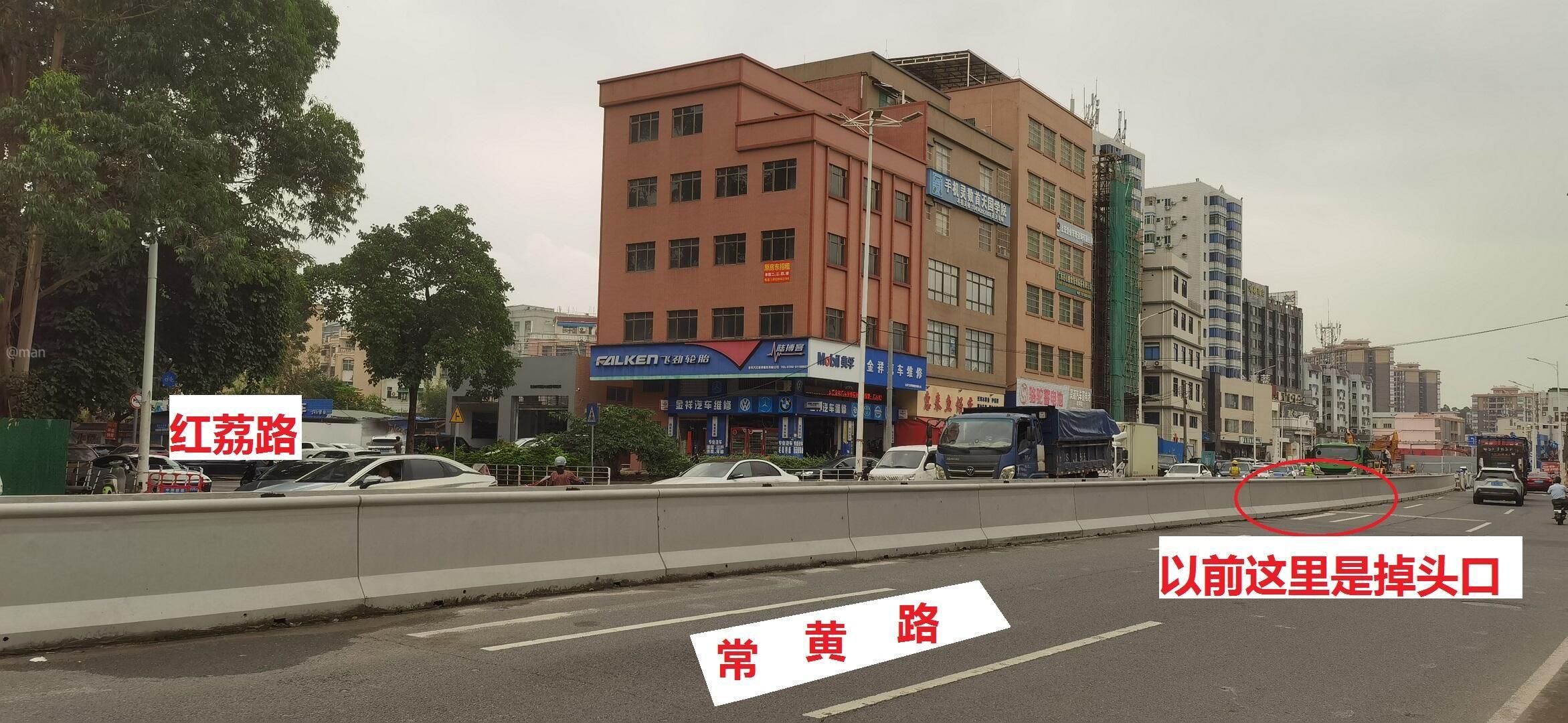 常平镇常黄路改造工程施工后,从北往南方向在常黄路与红荔路交界处设置了水泥隔离带,原先允许掉头转入红荔路的路口被取消。导致从常平大道方向前往常平镇中心幼儿园接送子女的家长,以及金地名京业主回家,均无法在此掉头,必须绕行至翠珠路红绿灯才能掉头。而翠珠路红绿灯本就拥堵严重,大大增加了出行时间与不便。 建议常平政府实地调研,恢复常黄路与红荔路交界处的掉头路口,或设置合理的掉头开口,切实解决周边居民出行难题,让民生工程更便民。感谢!